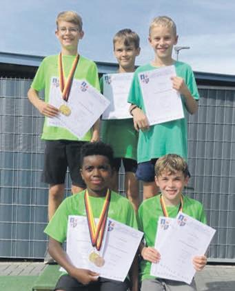 RemmeleimVierkampfM14.Er erreichtebei100Meter,Weitsprung,KugelstoßenundHochsprungjeweilspersönlicheBestleistungenundholtesichdamit verdientdenKreismeistertitel. EbenfallsKreismeisterwurde LuisSierigim4-KampfderM11. Erkonntedabeidreivonvier Disziplinengewinnen.Jermiah HildebrandkamaufdenBronzerang,denersichbesonders durchseineLeistungenimWeitsprung(3,96m)undBallwurf (39,50m)erkämpfte.