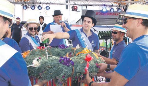 Kerwebesuchern.SonnenbotschafterinCharlotteI.hatteganze Arbeitgeleistet,sosahesaus, auchbeimFassanstichgingsie zielsicheransWerk,nachdrei Holzhammerschlägenflossdas Freibierausdem20-Liter-Fässchen.HCV-Sitzungspräsident undSprecherdesOrga-Teams verteiltedieBechersogleichans durstigePublikumunterdem Markthallendach.Bürgermeisterin BarbaraSchaderbedachteermit Dankeswortenfürdiegute ZusammenarbeitmitderStadt unddemBauhof,derTische, BänkeunddieTechnikaufgebaut hatte.Zum10-jährigenAmtsjubiläumdurftesichdieBürgermeisterinihrLieblingslied wünschen,dasderMusikzugder FreiwilligenFeuerwehrenBürstadt undHofheimunterderLeitung