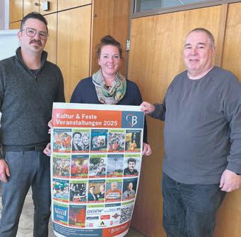 zuletztderSpargelwanderung, welchetrotzaller„Baustellensorgen“undderBrückensanierung aufden27.Aprilterminiertist. „OhneeinenShuttlebus-Service wäredieVeranstaltungnicht darstellbar“,setztTimLuxauf dieZusagederzuständigen Stellen.„Bürstadtfeiert!“heißt eswiegewohntbeimStadtfest vom23.bis25.Mai,allerdings seiendieSynergieeffektein Zusammenhangmitdem JubiläumderDietmar-Hopp-Stiftungnochnichtkonkretisiert,so WirtschaftsfördererTimLux. DieKerweninRiedrode(18. bis21.Juli),Bobstadt(22.bis25. August)undnatürlichinBürstadt (2.bis6.Oktober–mitStadtlauf) schließensichan.Aufgrunddes Feiertagesam3.Oktoberwerde dieBürstädterKerwebereitsam Donnerstagrichtigloslegen, bekundeteLux,derimAnschluss nochaufdasgewohntumfangreicheProgrammimvorweihnachtlichenBürstadtzumJahresausklanghinwies.EineOpen-AirVeranstaltungimSchwimmbad steheebenfallsaufderAgenda, aberdazeichneeinprivaterVeranstalterverantwortlichkonstatierteTimLux. InsgesamtbescherendieVerantwortlichenAkteurendenBürgernauch2025einPotpourrian guterUnterhaltung.Zudem musstedasBudgetnichtkomplett ausgeschöpftwerden,wieRoland Weinzmitteilte.DemKulturbeirat attestierteereinenausgewogenen MixanVorschlägen,derrealisiert werdenkonnte. „NeuesundAltbewährtes“, freutesichWeinzaufdasErgebnisundvorallemauchdarüber, dassmanbeidenTerminplanungenÜberschneidungenmitden Vereinsaktivitätenvermeiden konnte.
