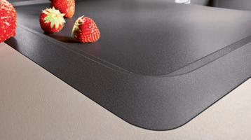 Materialet er steinhardt, gjennomfarget og preget av en vakker og glatt overflate som er robust, ripebestandig og krever kun et minimum av daglig rengjøring.