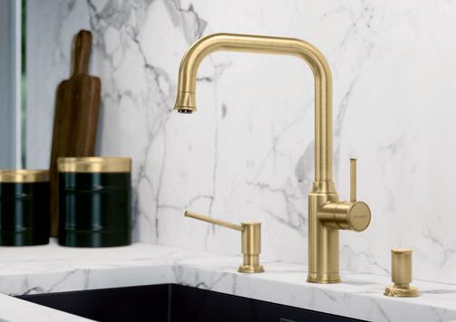 Gyldne farger er et populært valg på kjøkkenet, enten i form av håndtak, kjøkkeninnredning eller andre dekorative elementer. BLANCOs blandebatterier metalloverflaten messing børstet gir kjøkkenet ditt ekte wow-faktor og tilfører et eksklusivt uttrykk til våtsonen.