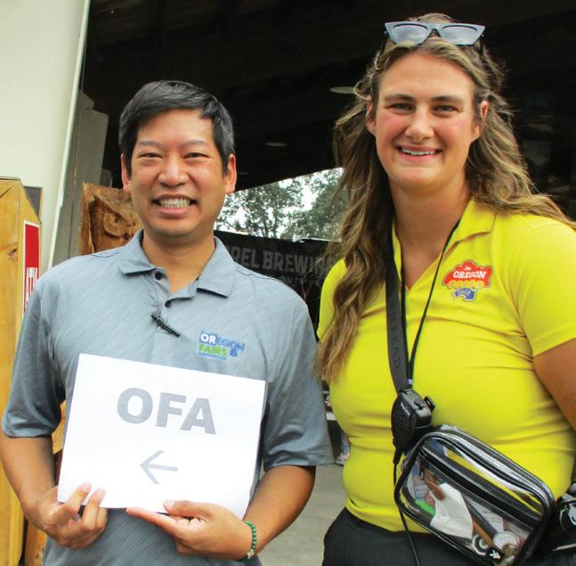 Patrick Sieng, Oregon Fairs Association, and Madison Kanksy, Oregon State Fair, helping in Salem