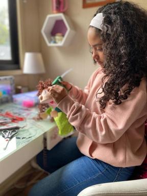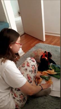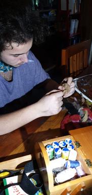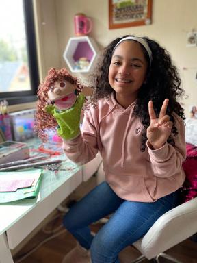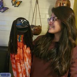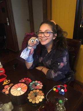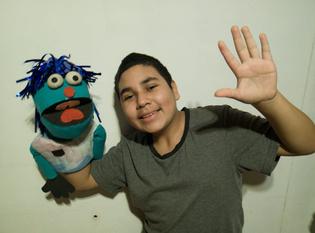 Luego de varios talleres de manualidades para fabricar el títere, se realizan talleres de manejo de títeres en preparación para grabar el video.