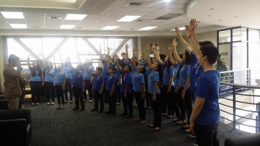 Gendarmería de Chile: El Coro realiza un Concierto en la Escuela de Gendarmería en Santiago, invitado por el Director Nacional Don Tulio Arce, donde tuvieron la oportunidad de Compartir con casi mil gendarmes, estudiantes y personal institucional. Compartiendo escenario con la banda instrumental de Gendarmería. Se destaca el ambiente lleno de amor y camaradería, en la recepción y estadía de los niños.