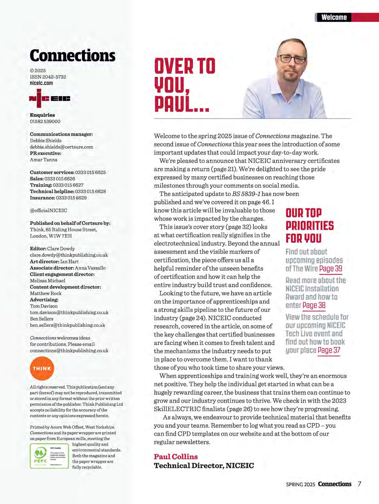 There are some exciting changes and important updates highlighted in this issue of Connections. Paul Collins, NICEIC Technical Director, talks us through what we can expect and our top priorities for you