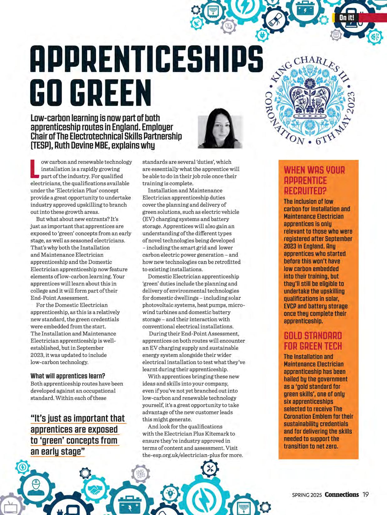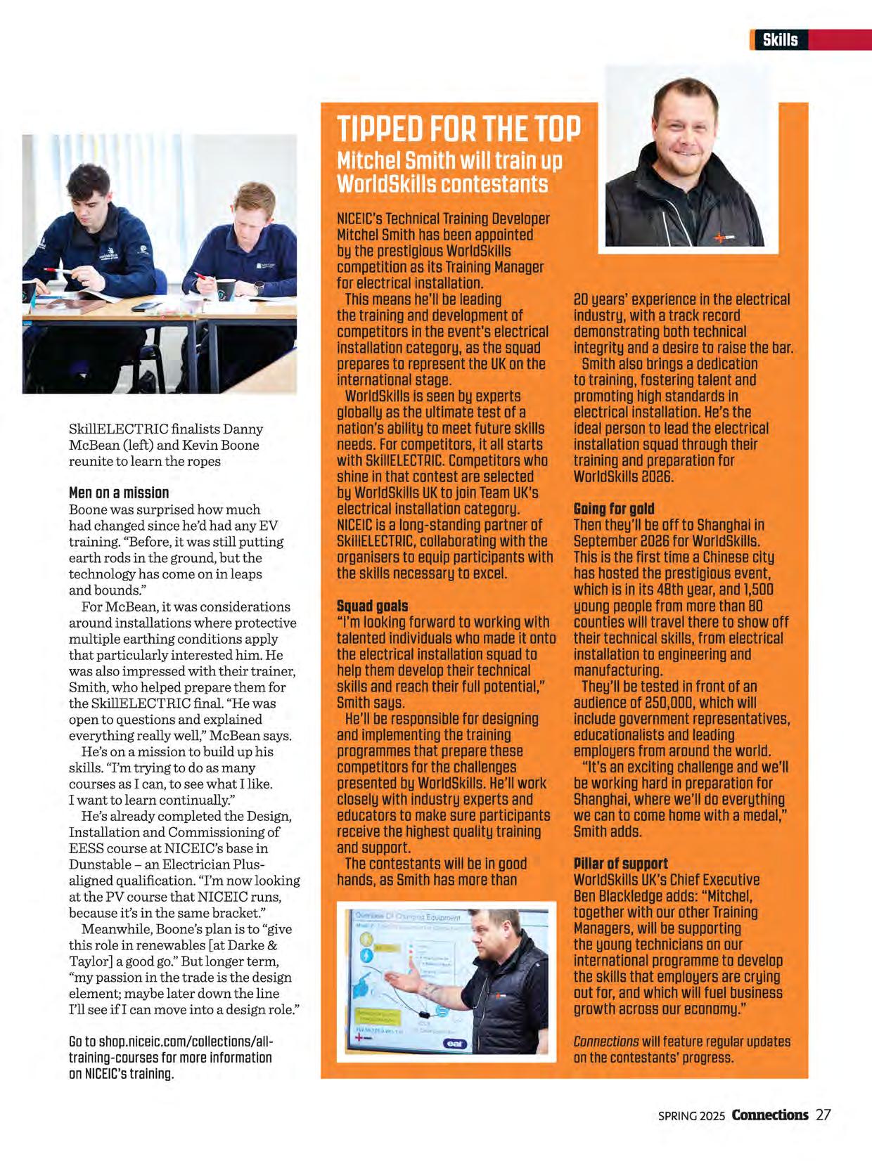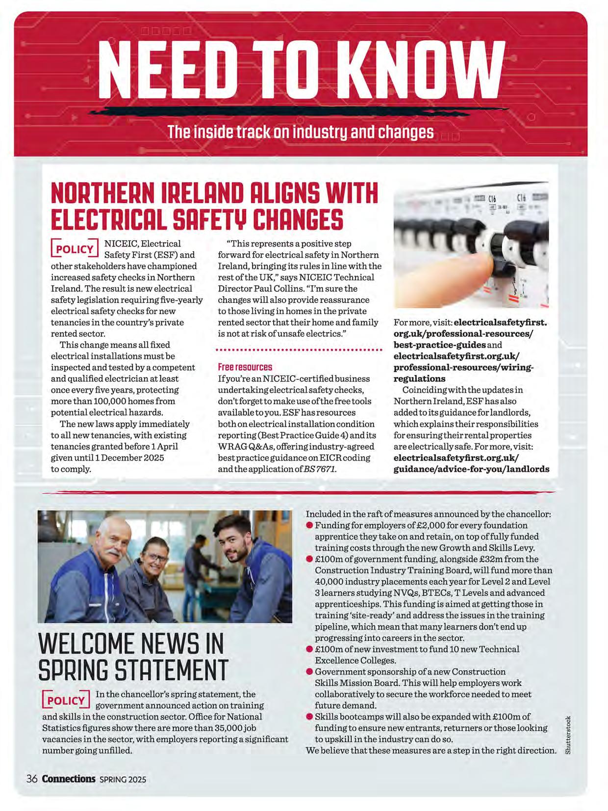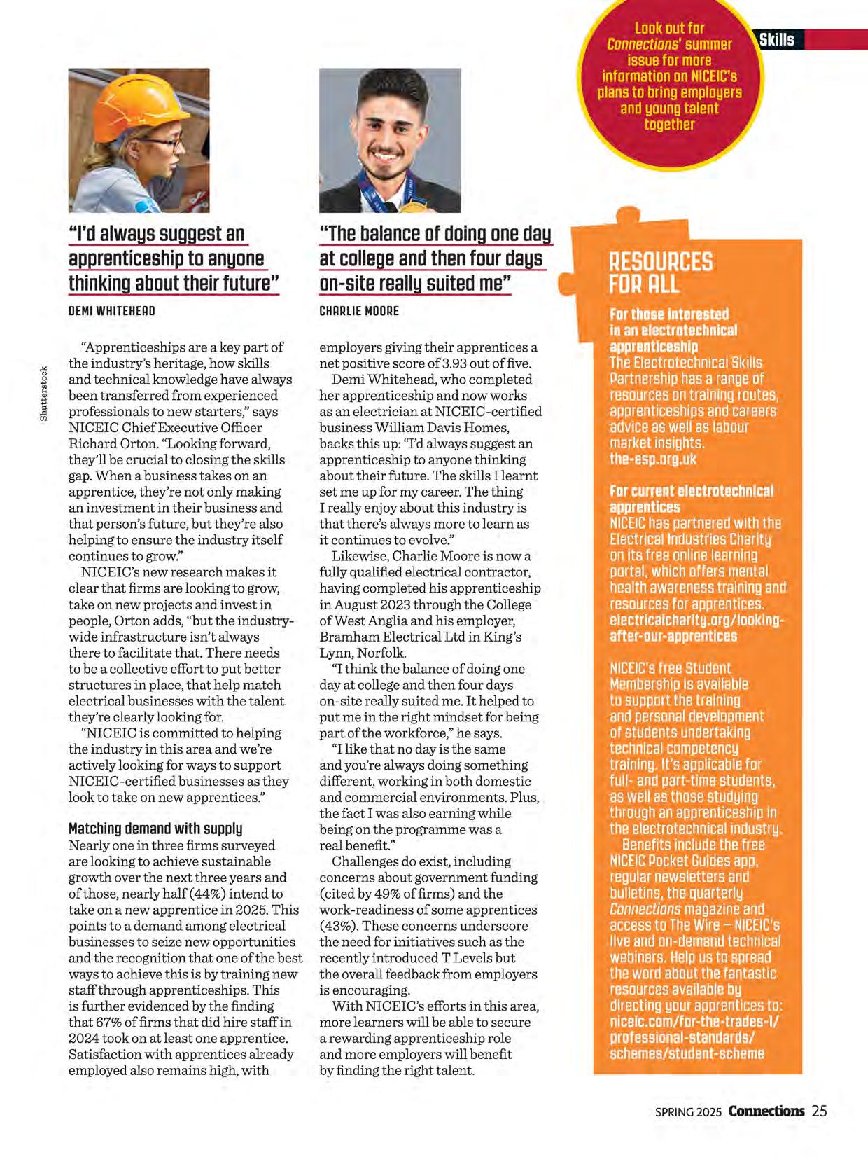 When apprenticeships and training work well, they're an enormous net positive. They help the individual get started in what can be a hugely rewarding career, the business that trains them can continue to grow and our industry continues to thrive. We check in with the 2023 SkillELECTRIC finalists (page 26) to see how they're progressing. As always, we endeavour to provide technical material that benefits you and your teams. Remember to log what you read as CPD -you can find CPD templates on our website and at the bottom of our regular newsletters.