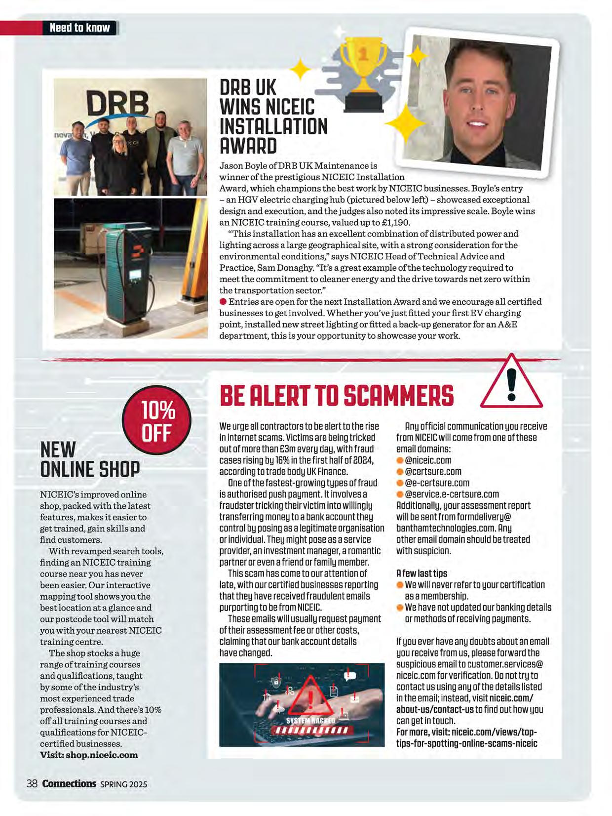 Readmoreaboutthe NICEICInstallation Awardandhowto enterPage38
