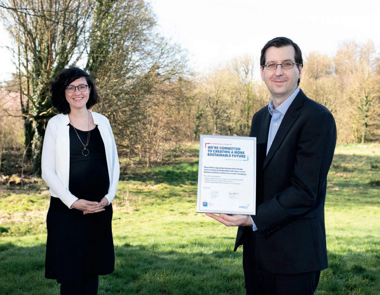 William Steele, Director of Customer Solutions (NI) at Power NI, pictured with Géraldine Noé, Head of Environment at Business in the Community NI, after signing the Climate Action Pledge.