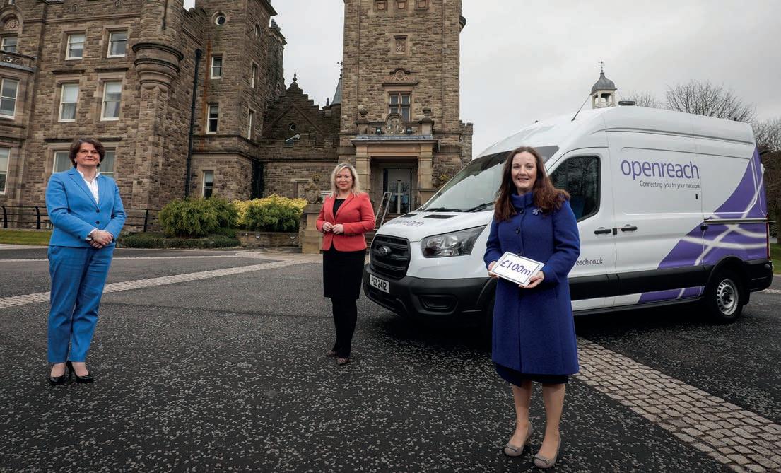 Pictured are First Minister Arlene Foster and Deputy First Minister Michelle O’Neill with Mairead Meyer, director of Openreach Northern Ireland.
