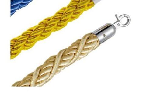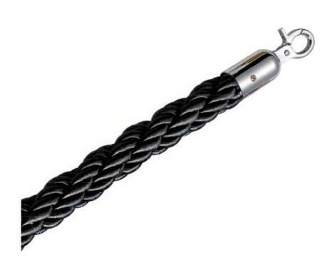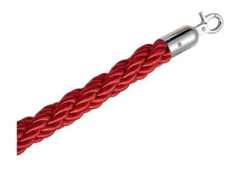 Flettet tau med kroker i rustfritt stål. Farger: sort, rød og sand.