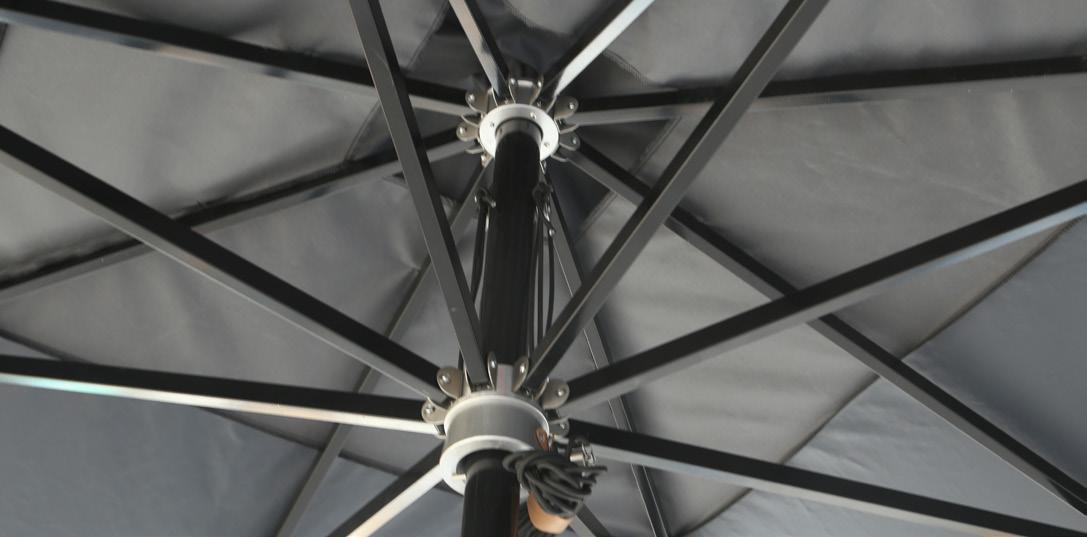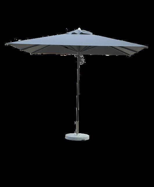 Våre egne parasoller har vi valgt å lagerføre i 2 farger på mast og duk. Kombinasjonen passer inn i de fleste miljøer og valgene er Mørk grå mast/ spiler med mørk grå duk eller Lys sand mast/ lys beige duk.