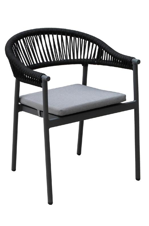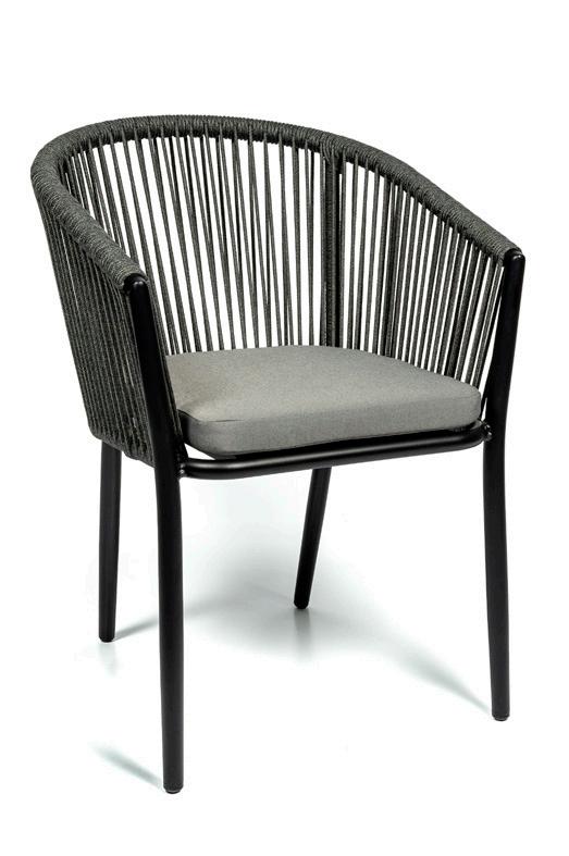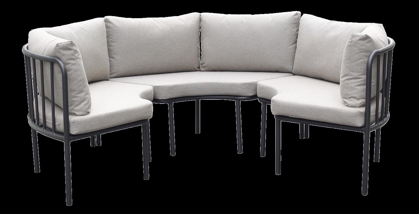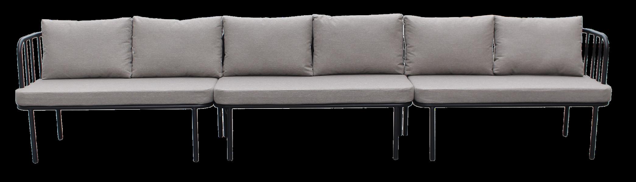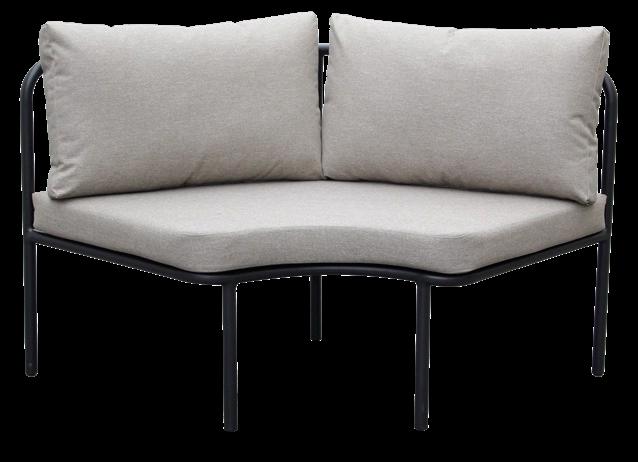 Sofaserien er produsert i sortlakkert aluminium ramme/ben og med faste gode puter polstret i stoff for utebruk.