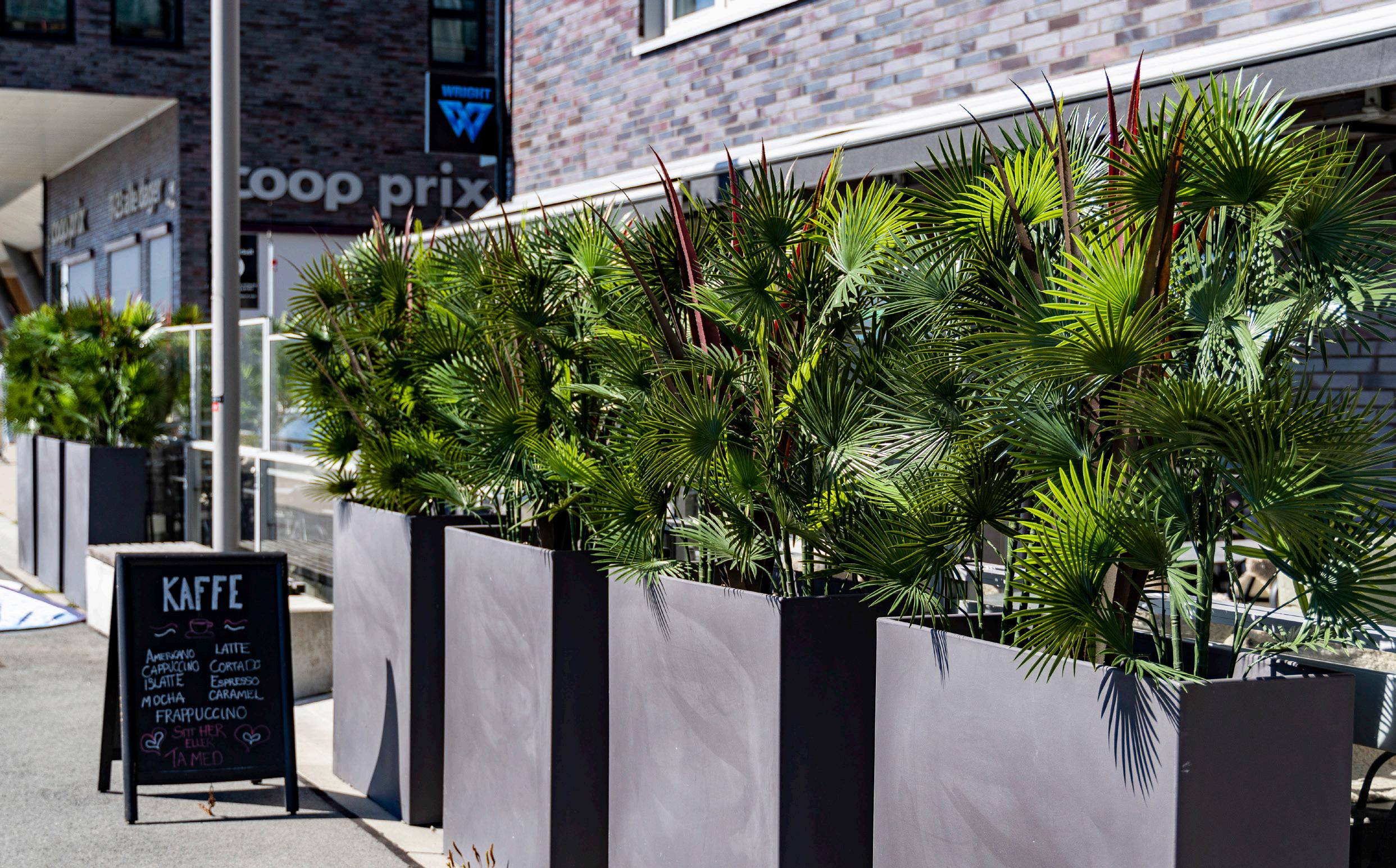 Blomsterkasse til veggfeltpasser begge størrelser Leveres i grå finish, med selvanningssystem!