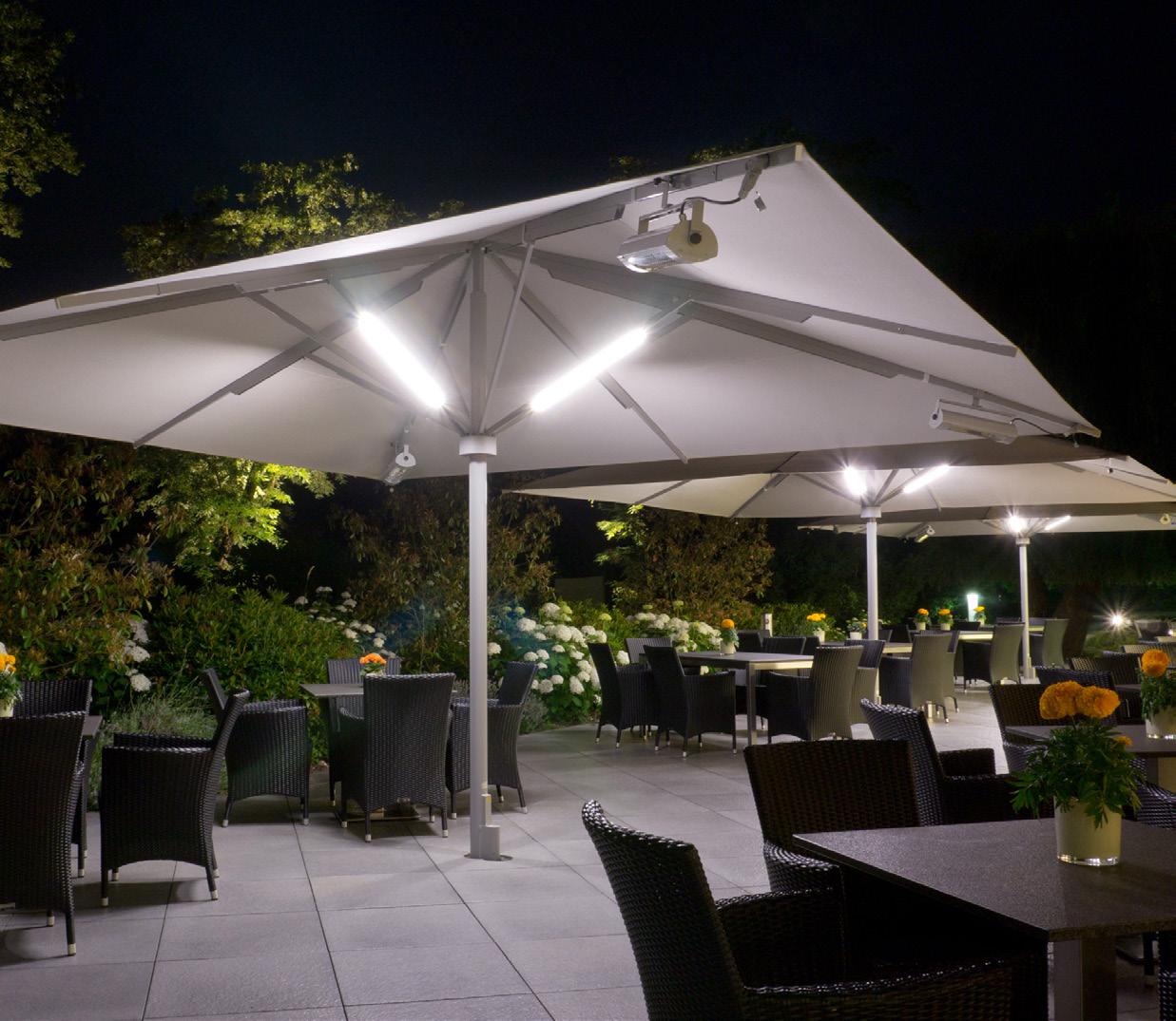 Funskjonen er ikke bare solskjerming, men også et stemnings-skapende element som skaper et deiligere uterom, en mer intim uteplass som også definerer uterestauranten på lang avstand!