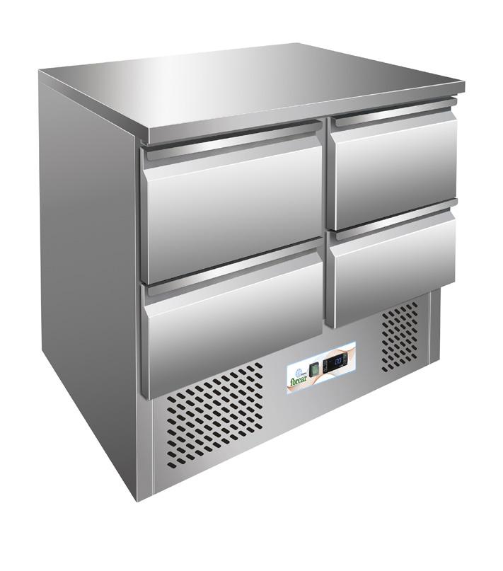 Kjølt arbeidsbenk 4 skuffer, GN1/1 R600a miljøgass, 900x700x850mm