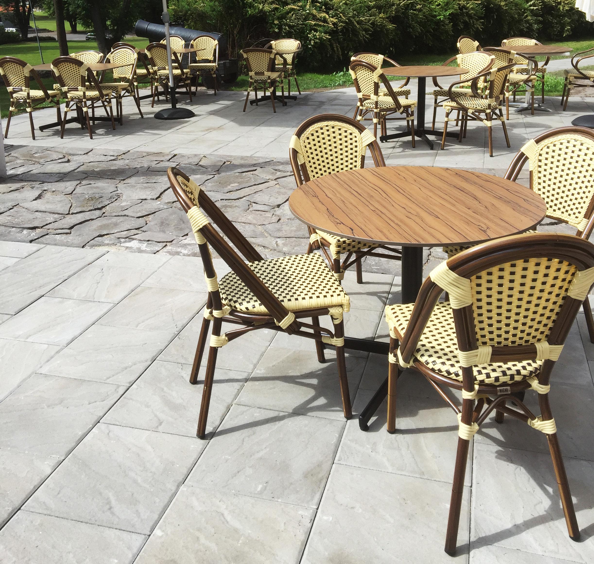 MATCH IT: Vi matcher den laveste pris du kan dokumentere på tilsvarende produkt og merke i hele vårt sortiment, etter kjøp refunderes ikke penger om andre lavere priser skulle dukke opp. Vi forbeholder oss retten til å forkaste Match IT konseptet om vi finner prisen ”unaturlig” lav i forhold til innkjøpspriser, frakt og valuta. Match IT konseptet gjelder på nettopriser ekskl. mva, miljøavgift og frakt. SLIK BESTILLER DU Nettbutikk: NICHE.no Ring og bestill: 33 06 10 10 E-post: post@niche.no Vi elsker herlige måltider og godt i glasset i friluft! NICHE leverer forseggjorte uteserveringer, sjarmerende fortausplasser, stemningsfylte bakgårder og pulserende torvplasser! Våre møbler tåler norsk sommer, enten det er sol, vind eller regn. Kontakt oss for ditt prosjekt! Strandhaven, Lillesand Ferrara stol, s. 6 Champagnia stol, s. 6 StableTable 60x70 Tarred Wood m/ understell