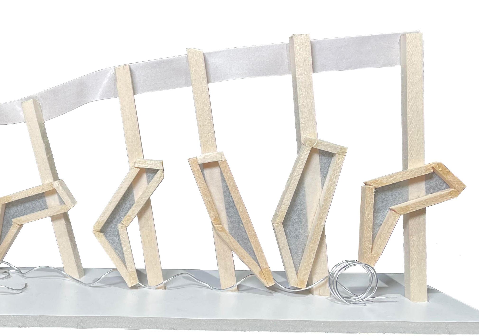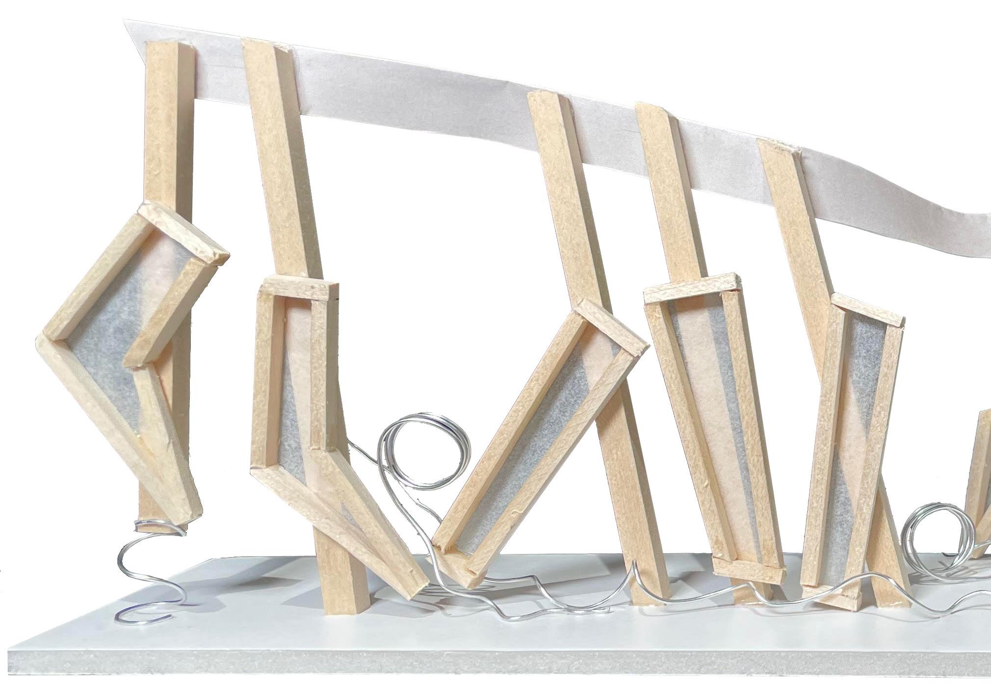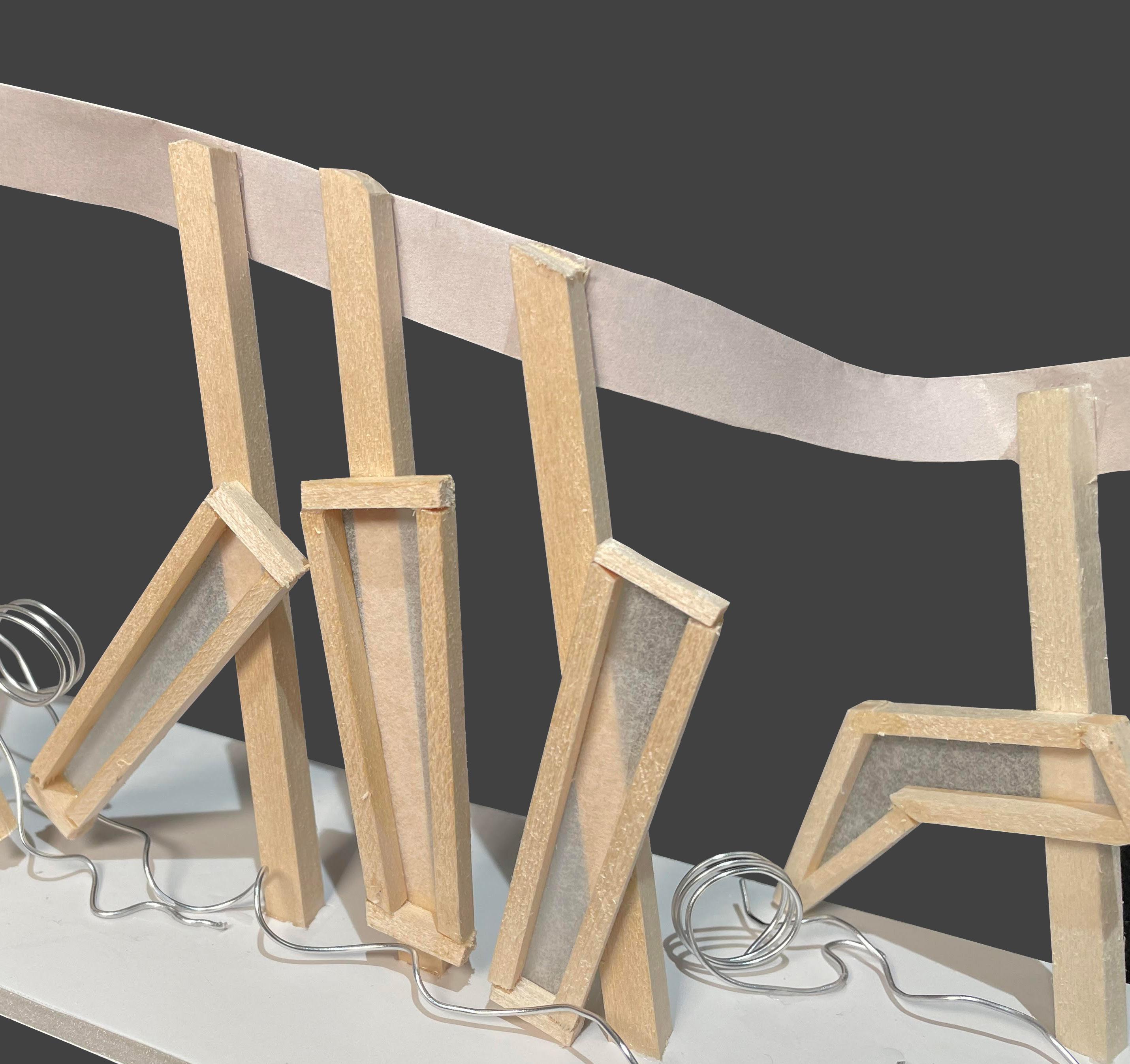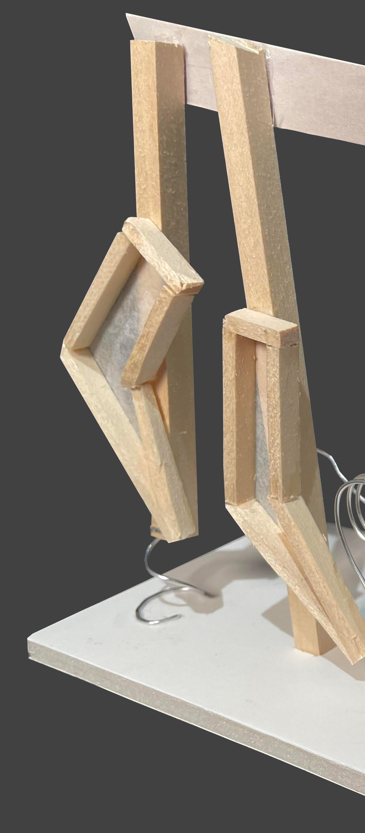 The sticks and ribbon demonstrate the body vector and head motion. The ribbon also demonstrates unity and harmony in the design, exhibiting that the project is one cohesive piece. The polygons demonstrate the occupied space taken up by the left (kicking) leg. Lastly, a wired coil was used to show the motion of the soccer ball I kicked in the video taken. With four different materials being used in one project, the texture of the project is another talking point.