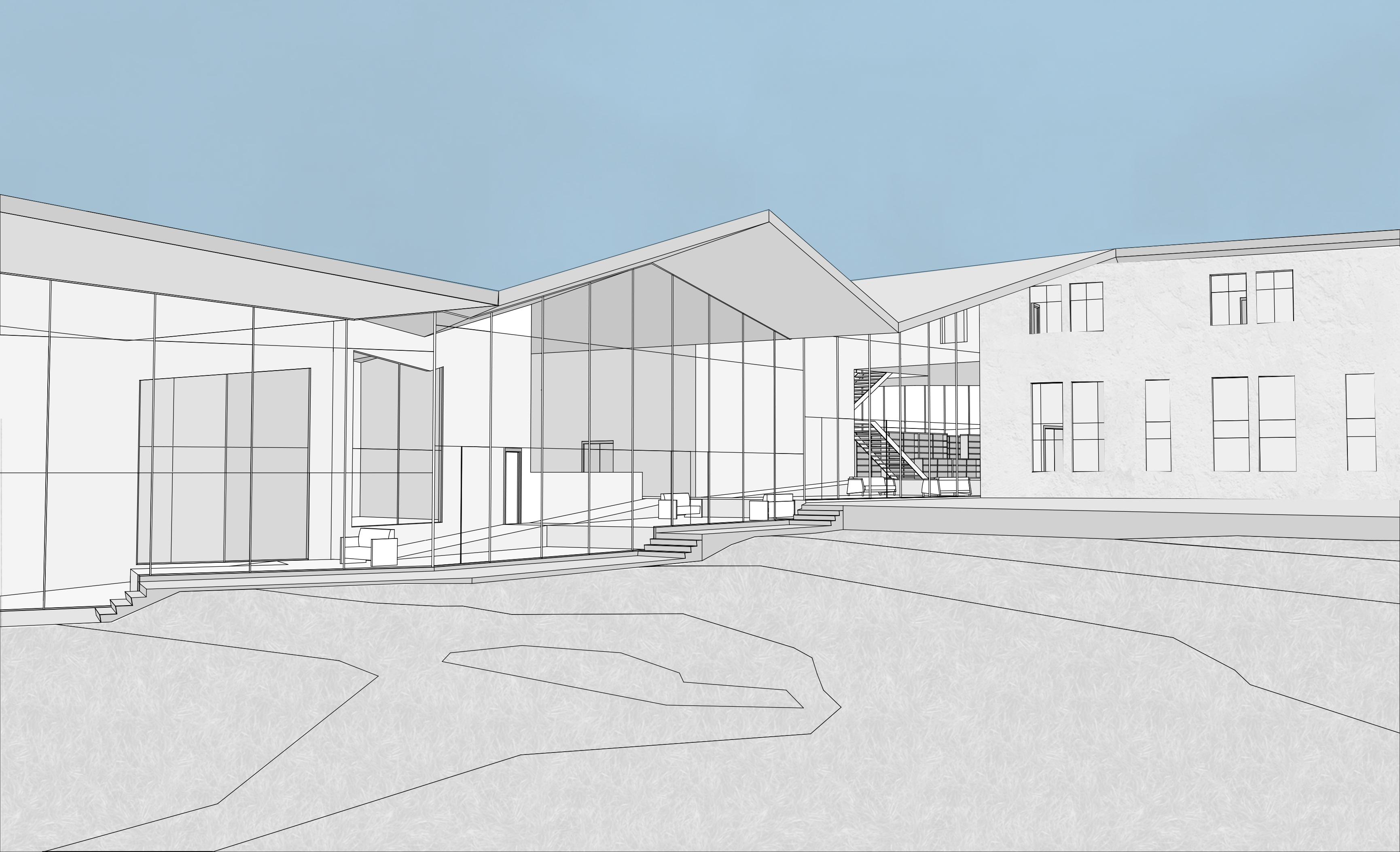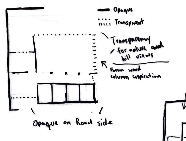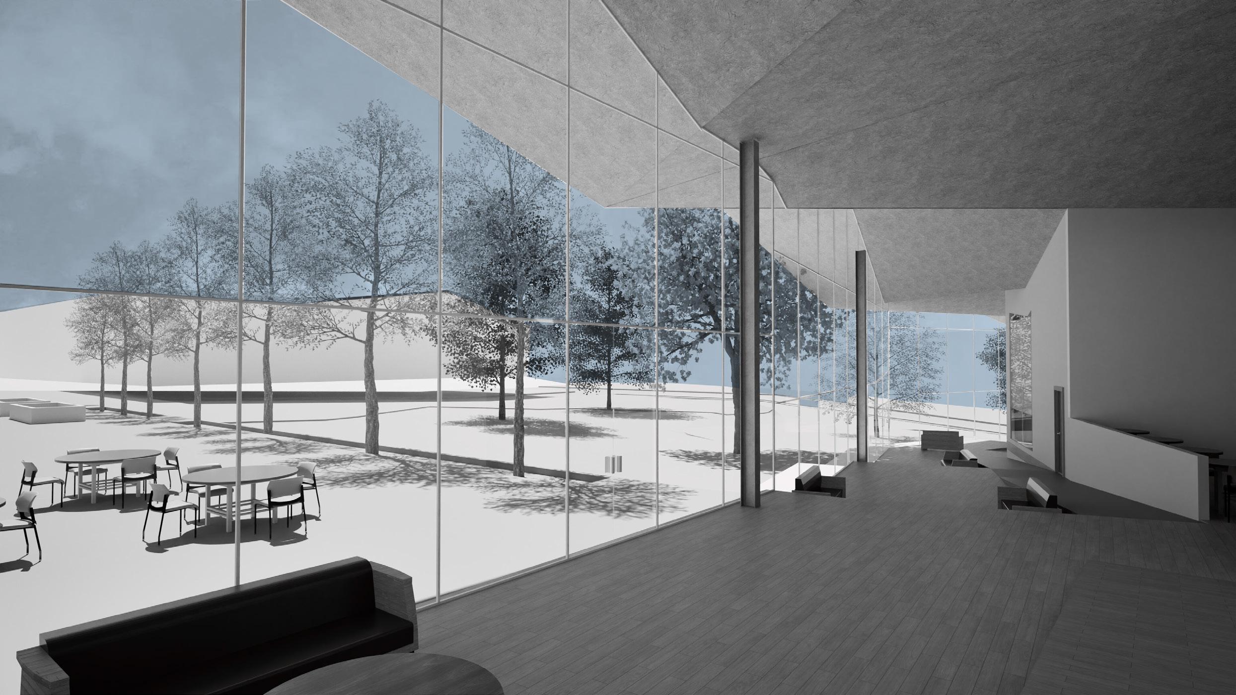 The cafe is located at the southside, closest to where visitors will enter. The concessions area is located to the left and service is on the side as the main users will come from the lawn events north in the summer. The Bathrooms and ticketing office are separate from the cafe as these facilities will be at access beyond the open hours of the cafe.