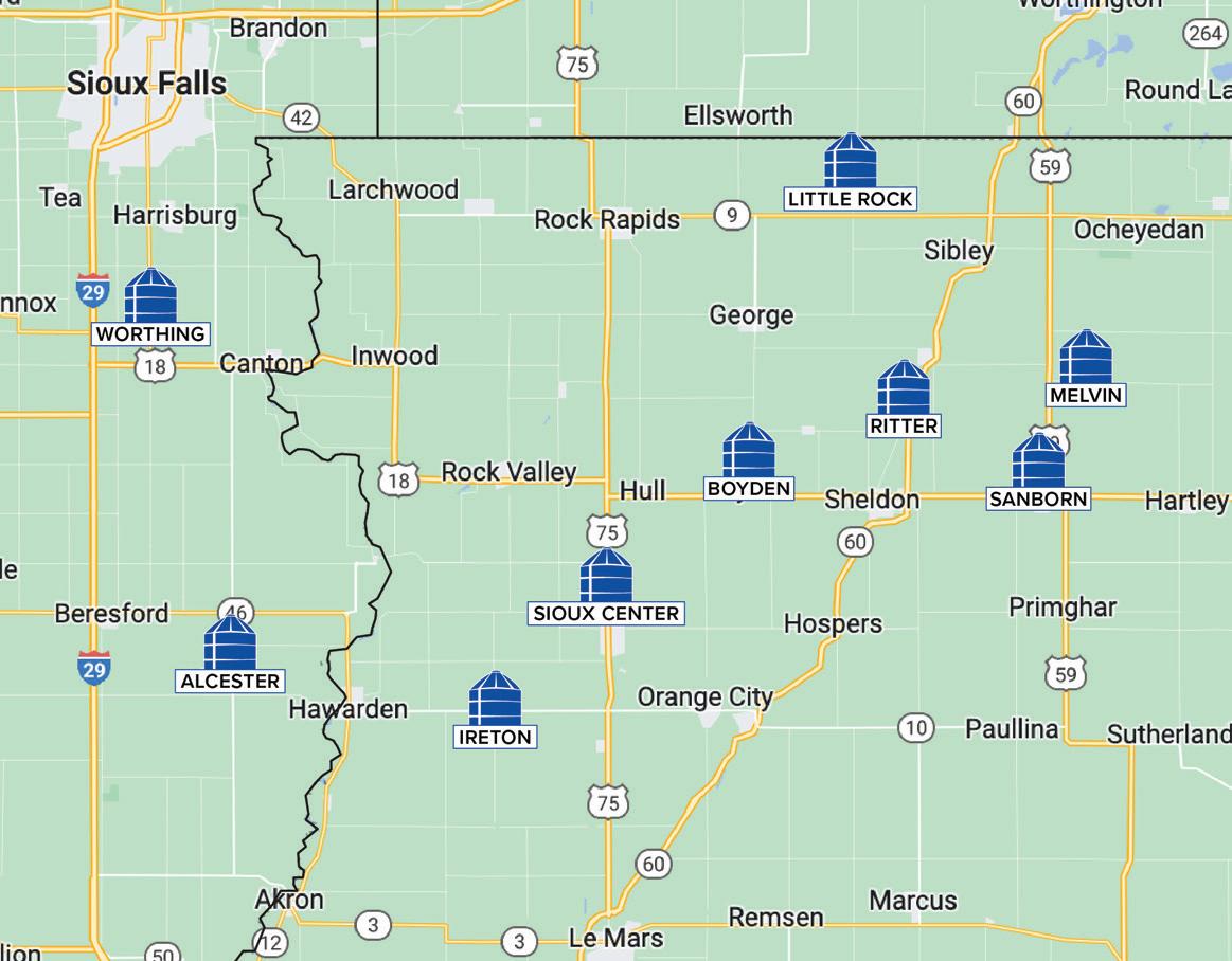 ALCESTER | BOYDEN | IRETON | LITTLE ROCK | MELVIN | RITTER | SANBORN | SIOUX CENTER | WORTHING