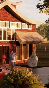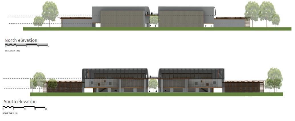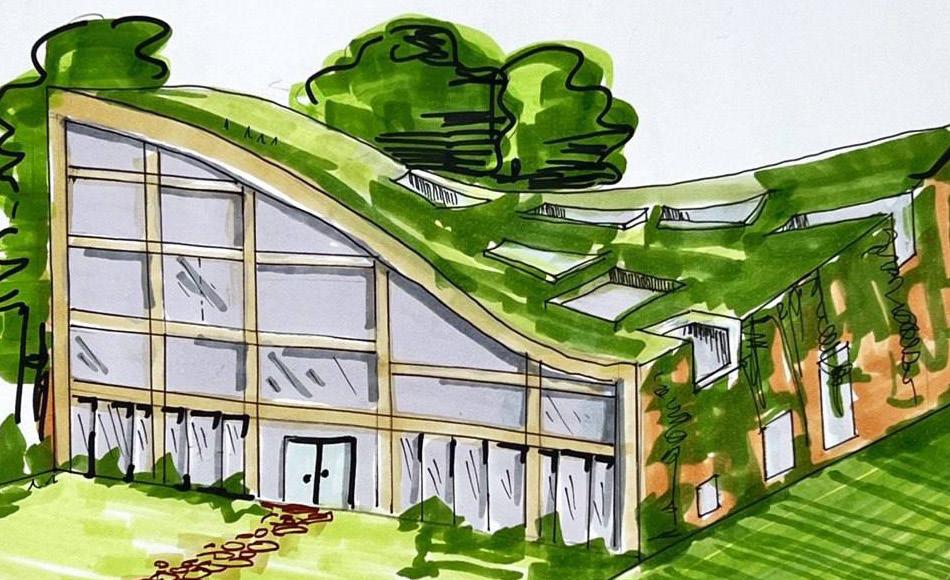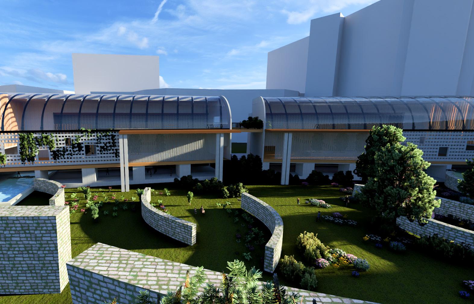 ILLUSTRATING THE BUILDING DESIGN FOR THE GREEN BUILDING SCATTERED AROUND THE SITE.