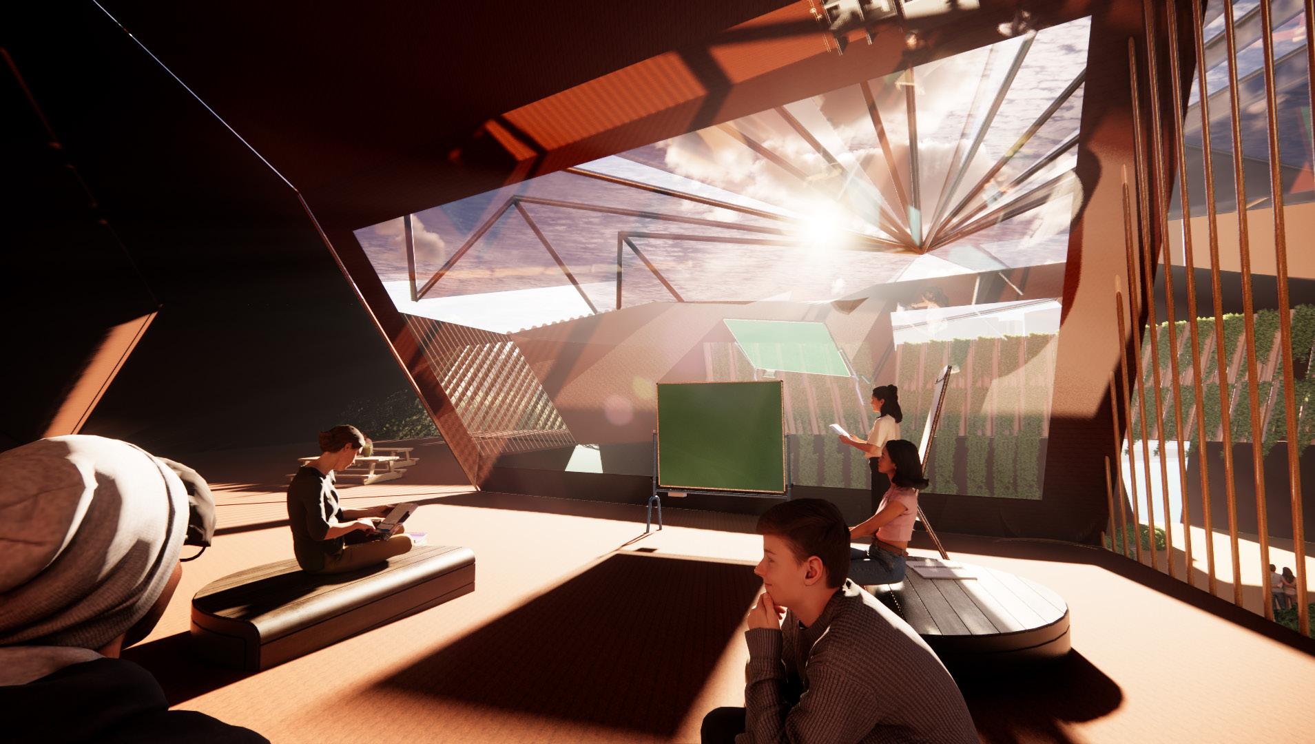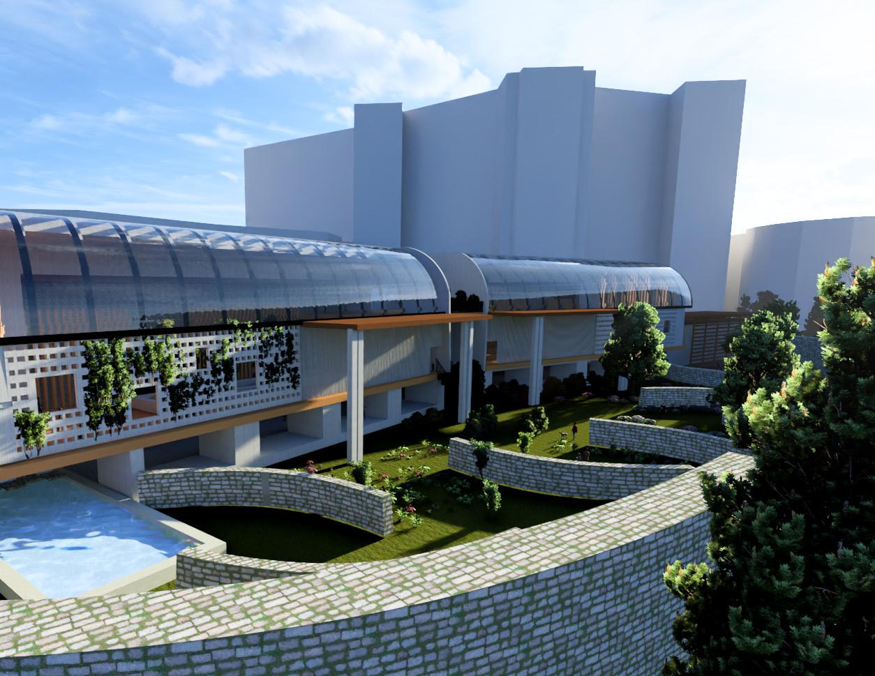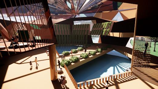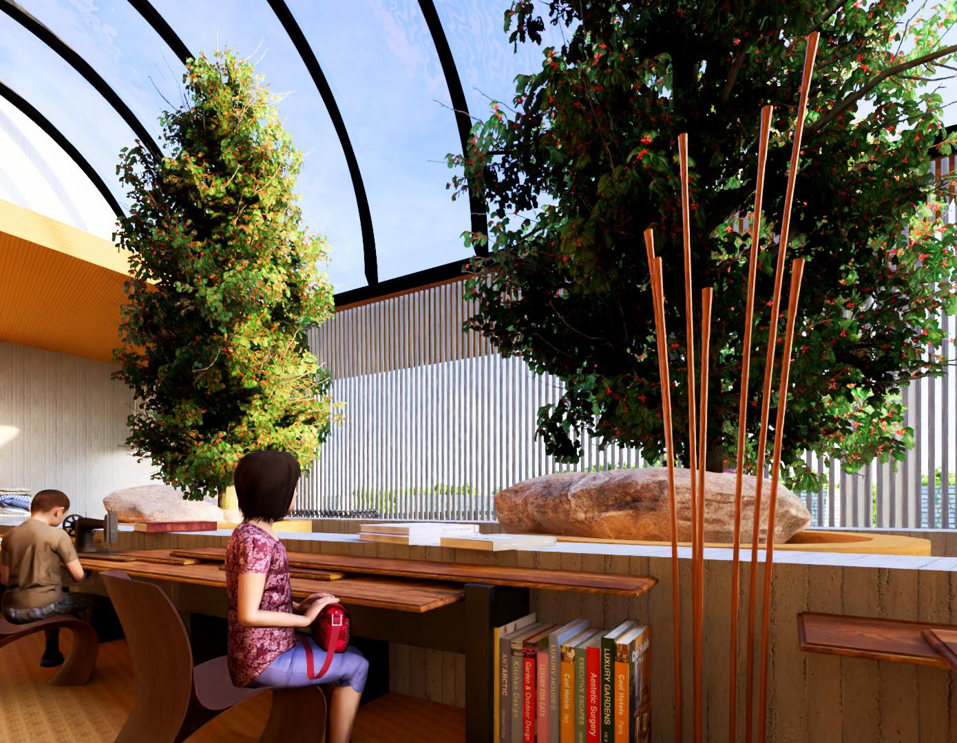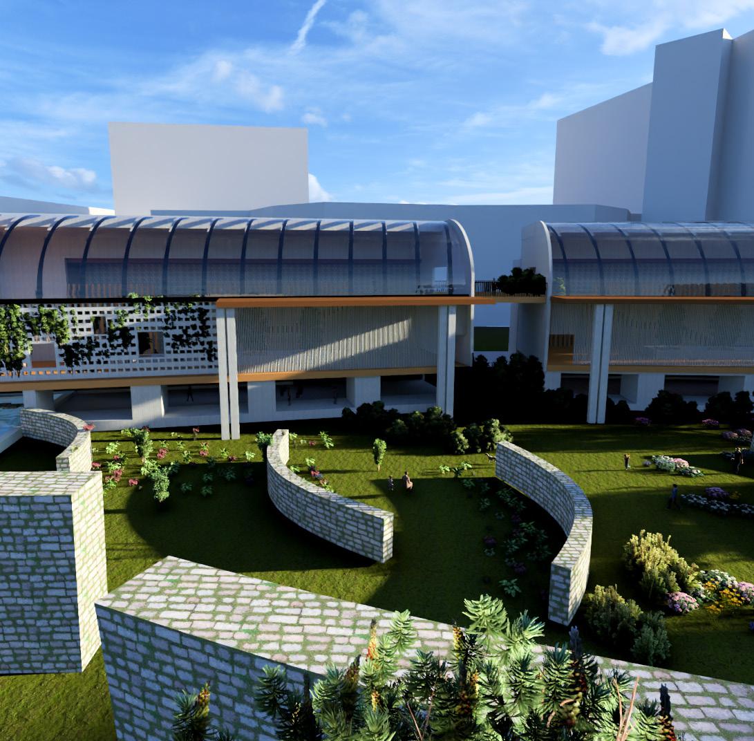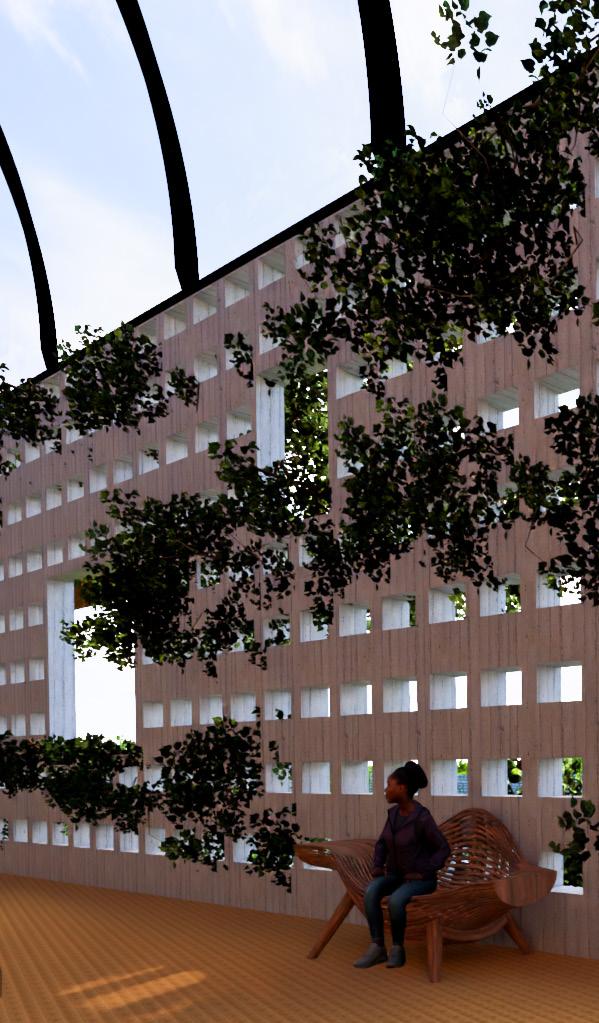 WITHIN THE SANCTUARY, VIBRANT SPACES ARE DEDICATED TO SKILL-SHARING, MENTORSHIP PROGRAMS, AND INTERACTIVE WORKSHOPS. THE BLENDING OF TROPICAL AND CATHEDRAL DESIGN ELEMENTS SERVES AS A REMINDER THAT INNOVATION CAN THRIVE WHEN ROOTED IN THE RICH SOIL OF TRADITION. THE SANCTUARY BECOMES A SACRED SPACE FOR THE EXCHANGE OF SKILLS AND KNOWLEDGE, WHERE YOUTH CAN CULTIVATE THEIR POTENTIAL AND COLLECTIVELY SHAPE A BRIGHTER FUTURE.