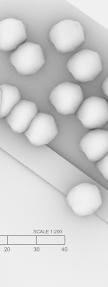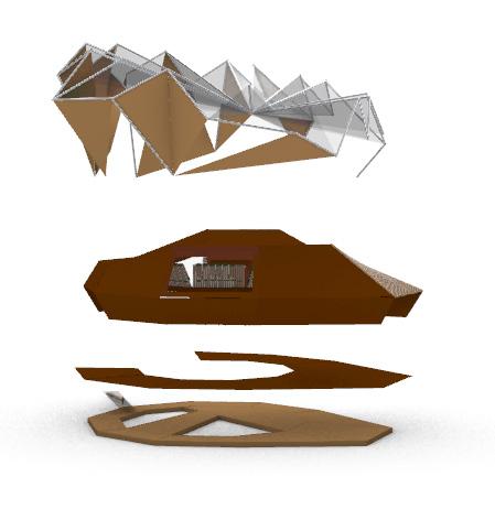 MULTIPLYING AND PUTTING THIS MODULE TESSELLATION TOGETHER CREATES A FORM THAT DISPLAYS THE FLEXIBILITY AND STRENGTH WE WANT TO EMBODY IN MY MODEL.THE GEOMETRY ALLOWS FOR SPACES AND SHADE TO FORM. WE CAN IMAGINE THE KIND OF SPACES THAT THE STRUCTURE CAN PROVIDE