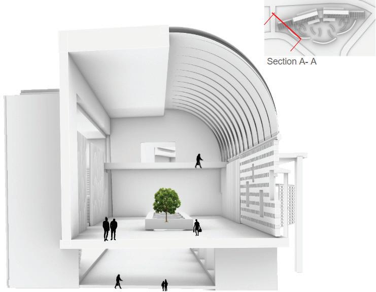 THE SANCTURARY TAKES ON AN INCREDIBLY FORMAL AND LINEAR EXPRESSION TO GUIDE THE VISITORS INTO THE MAIN CENTRAL GARDEN. THIS IS TO CREATE A SENSE OF MOVEMENT , REFLECTING ITS USE AS A MULTIPURPOSE HUB, AND ALLOWS THE VISITORS TO EXPERIENCE THE DIFFERENT SPACES WITHIN.