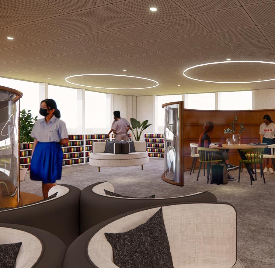 THESE SPACES OFFER STUDENTS UNCONVENTIONAL LEARNING EXPERIENCES THAT EXTEND FAR BEYOND THE BUILDING’S WALLS. INSIDE, A METICULOUSLY CRAFTED ENVIRONMENT FOSTERS INSPIRATION AND ELEVATES THE LEARNING PROCESS, FEATURING COLLABORATIVE ZONES AND IMMERSIVE SETTINGS