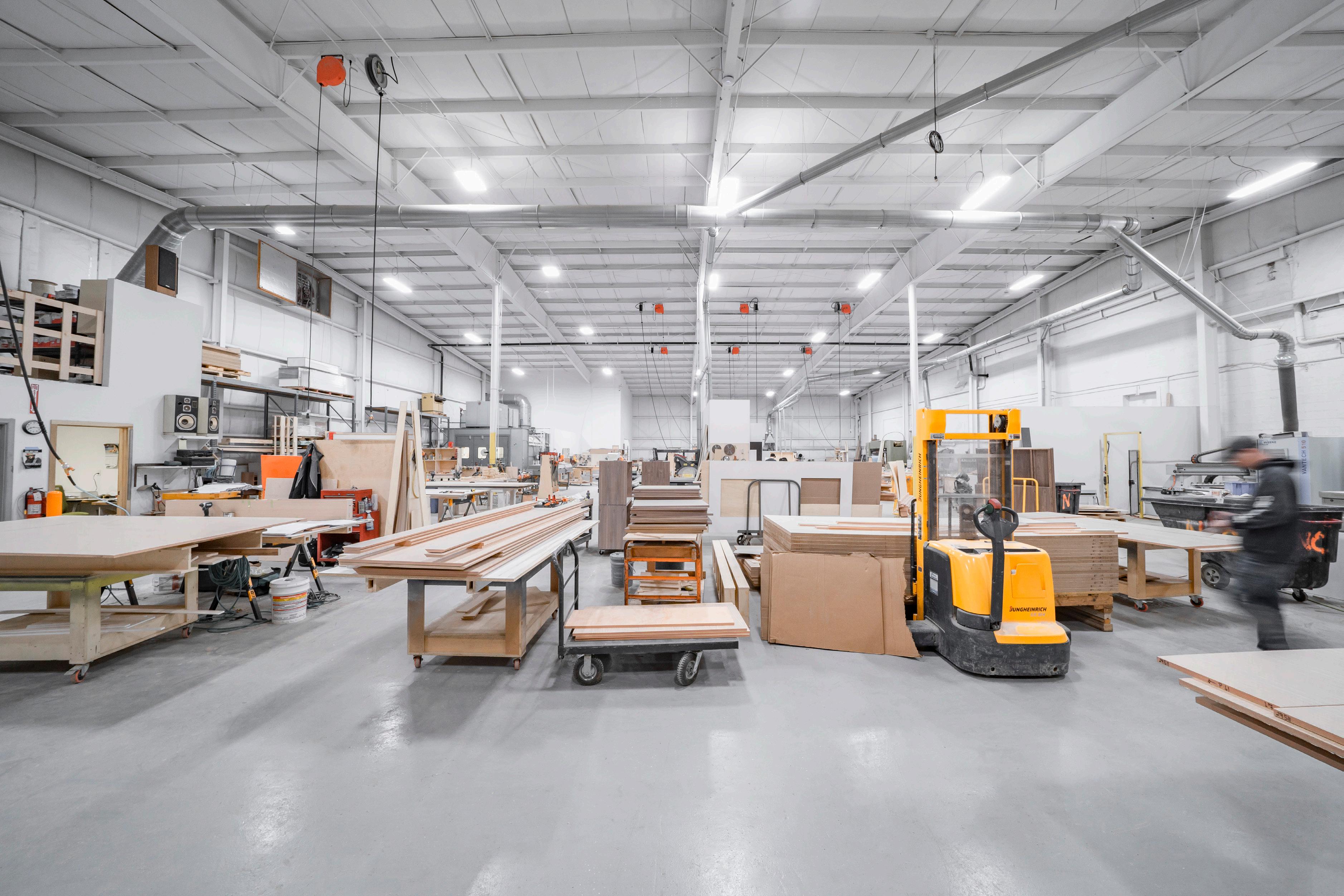 A dedicated 20,000 SF fabrication shop a lows our carpentry division to use state-of-the-art tools and equipment to create panelling, cabinets, doors, molding, and shelving.