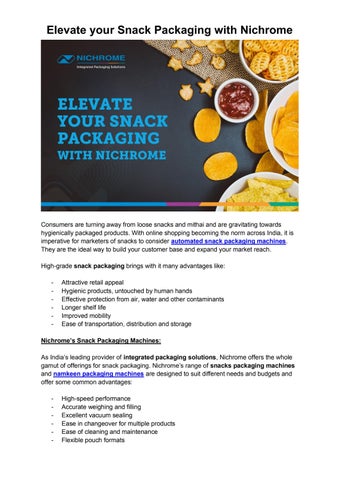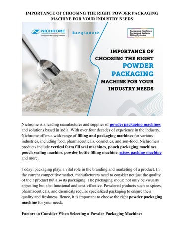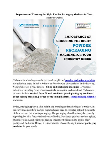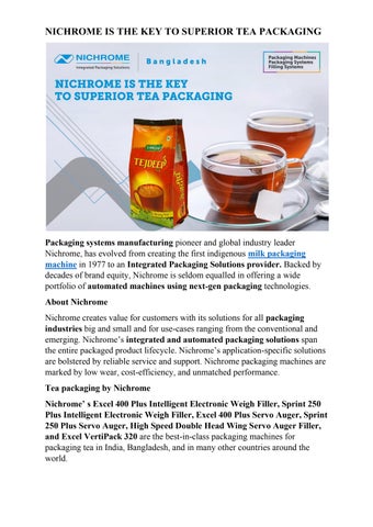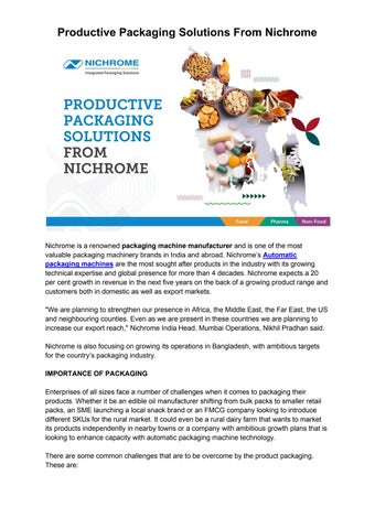 Nichrome is Leading Automated Packaging Machines Manufacturers, offering a wide range of Packaging Machines, Packaging Systems, Filling Machines for Solid, Liquid and Viscous products for Food, Pharma & Other.