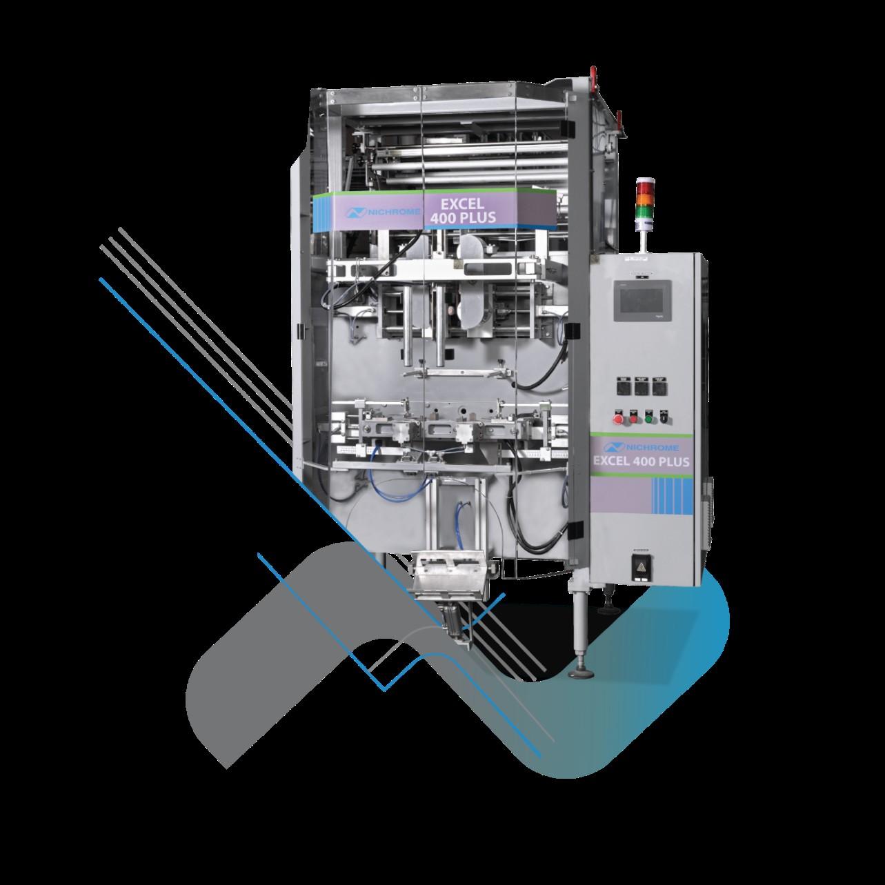 Excel 400 Plus Nichrome’s Excel 400 Plus a flexible and versatile packaging solution for a wide range of applications.Excel 400 Plus comes equipped with control engineering programmable logic controller and touch-screen human-machine interface. It is fitted with an AC motor driven bag length control mechanism, pneumatic/servo motor driven horizontal sealing mechanism, and print mark scanner to use panel printed film. Expeditious and easy changeover and built-in jumbo roll trolley for increased productivity makes the Excel 400 the right choice for many applications.Excel 600 model is also available for bulk packaging solutions.