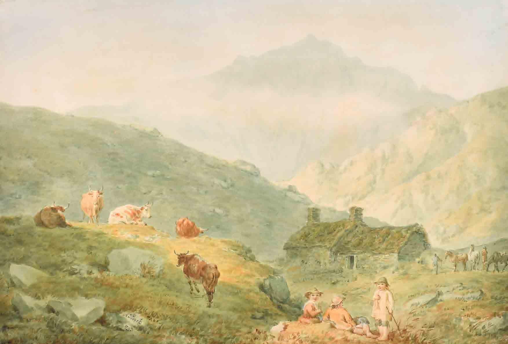 25. Moses Griffith (1749-1819) British “View at Ilam, Derbyshire” Pencil and wash