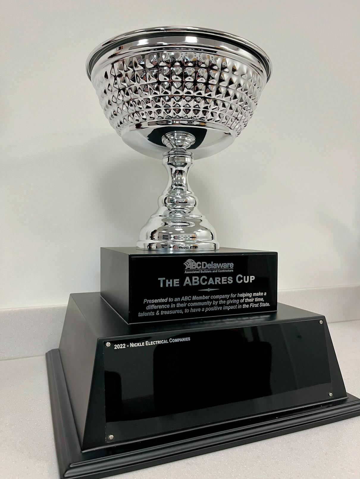 Nickle Electrical Companies was presented with the ABCares Cup from the Delaware chapter of Associated Builders & Contractors. The new award is given to an ABC member company that is active in the community, not only with ABC projects but other community service projects with their company. It was based on a point system for participation and social media shares utilizing the hashtag #ABCaresAlways.
