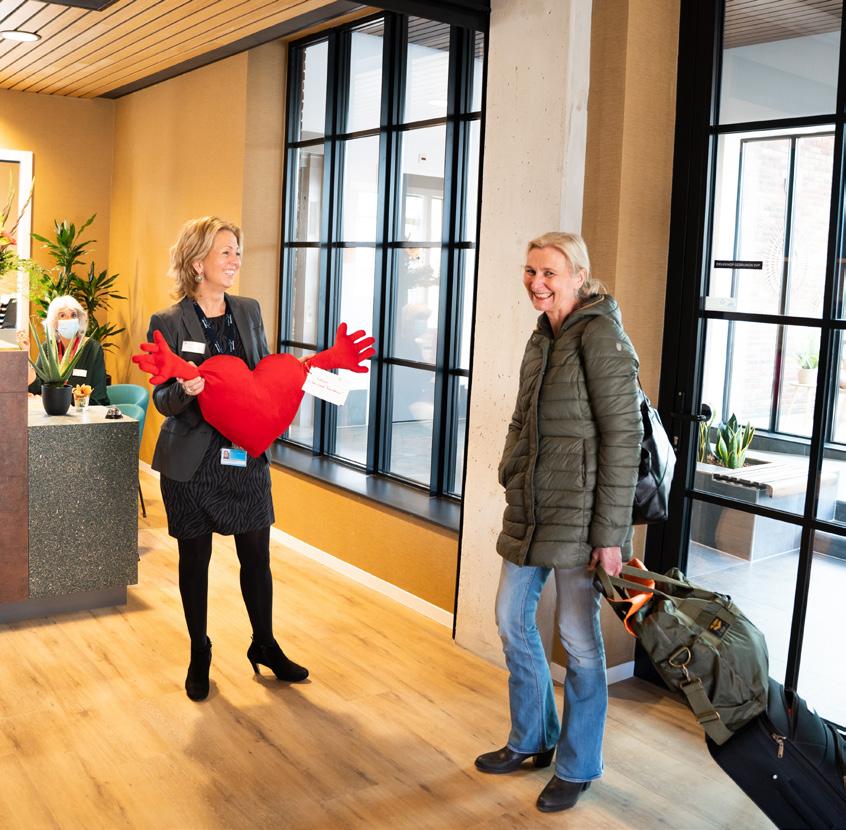 In april 2021 stapt Francien van Bijnen uit Tilburg het oude Familiehuis aan de Groene Hilledijk binnen. Haar man Ron heeft Hodgkin (lymfeklierkanker) en komt na een lang ziekbed in aanmerking voor een stamceltransplantatie in het Erasmus MC. Op 5 mei verhuist Francien mee naar het nieuwe Familiehuis en is ze de eerste gast die hier voet over de drempel zet. “Het was best moeilijk om het oude Familiehuis te verlaten. In twee weken tijd had ik al zoveel herinneringen gemaakt. Het contrast met het nieuwe logeerhuis was enorm. Het is in Little C zo ontzettend mooi. Toch ben ik blij dat ik ook even in het oude huis heb gelogeerd. Voor mij werd al heel snel duidelijk dat het gebouw niet het belangrijkst is, maar juist de mensen om je heen zoals al die ongelooflijk lieve vrijwilligers en de lotgenoten die ik heb ontmoet.”