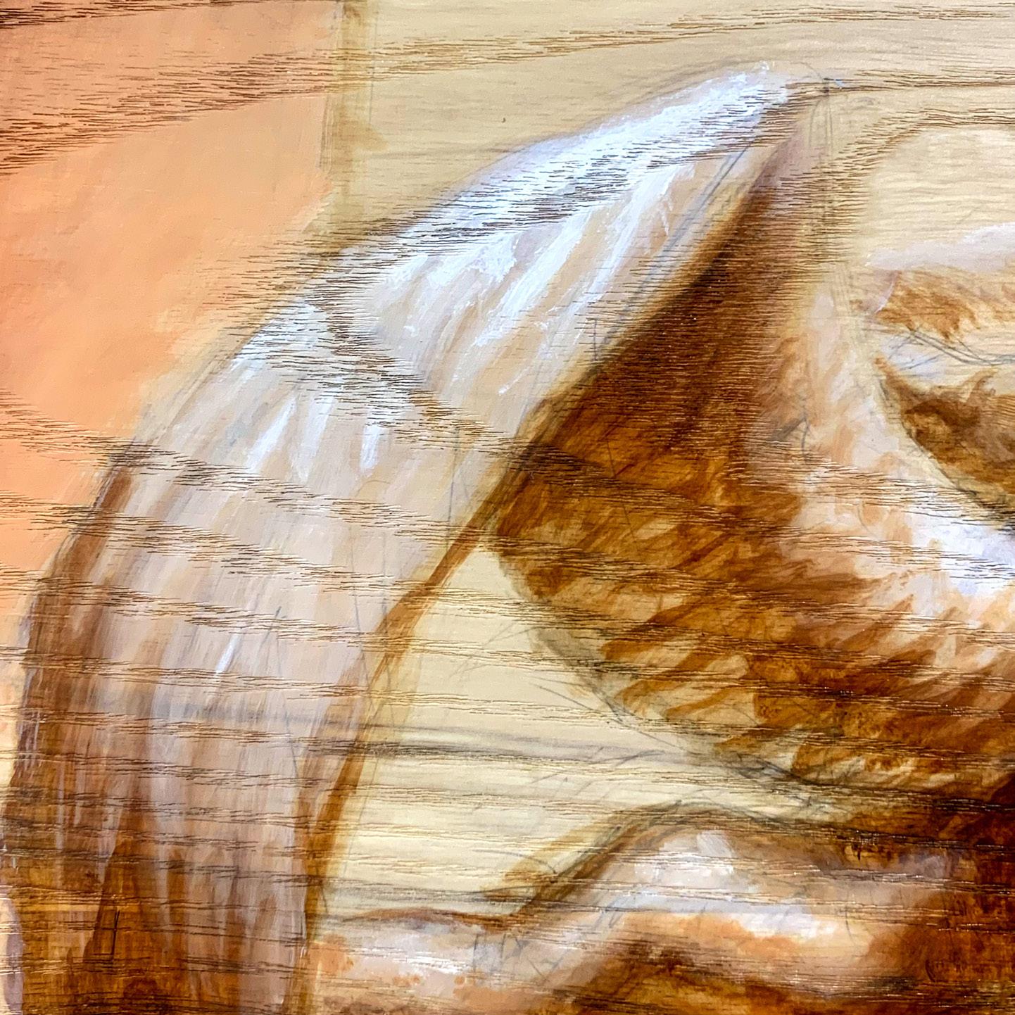 This piece seeks to follow the natural characteristics of wood to supplement an image of a battle between two figures, inspired by ancient Minoan gemstone carvings.