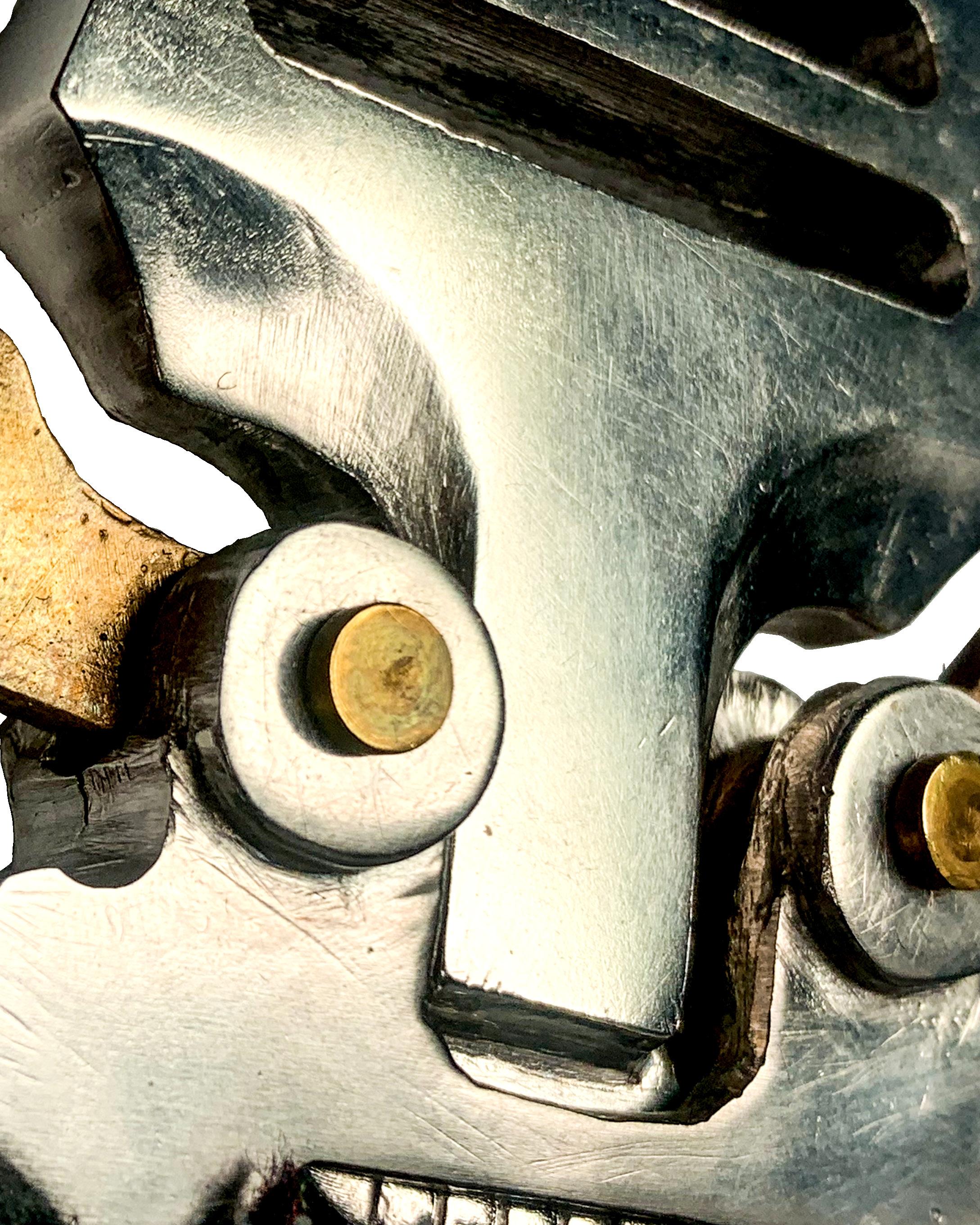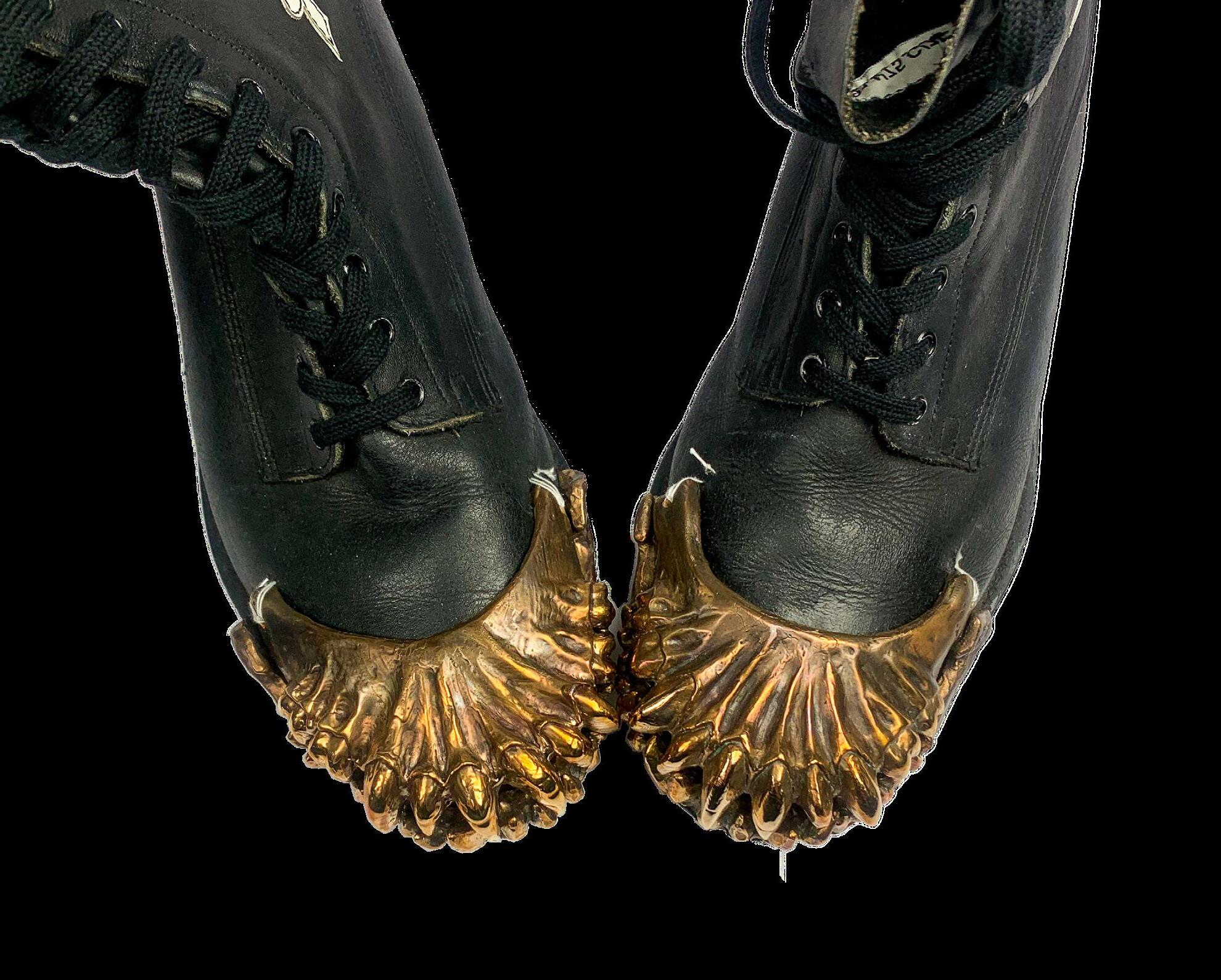 Concieved, sculpted in clay, molded in silicone, and polished over the span of a semester, this project is yet another child of the minds of mine and my frequent collaborator Leo Van Munching. Heavy, cumbersome, and clanky, they made their debut as part of his outfit line.