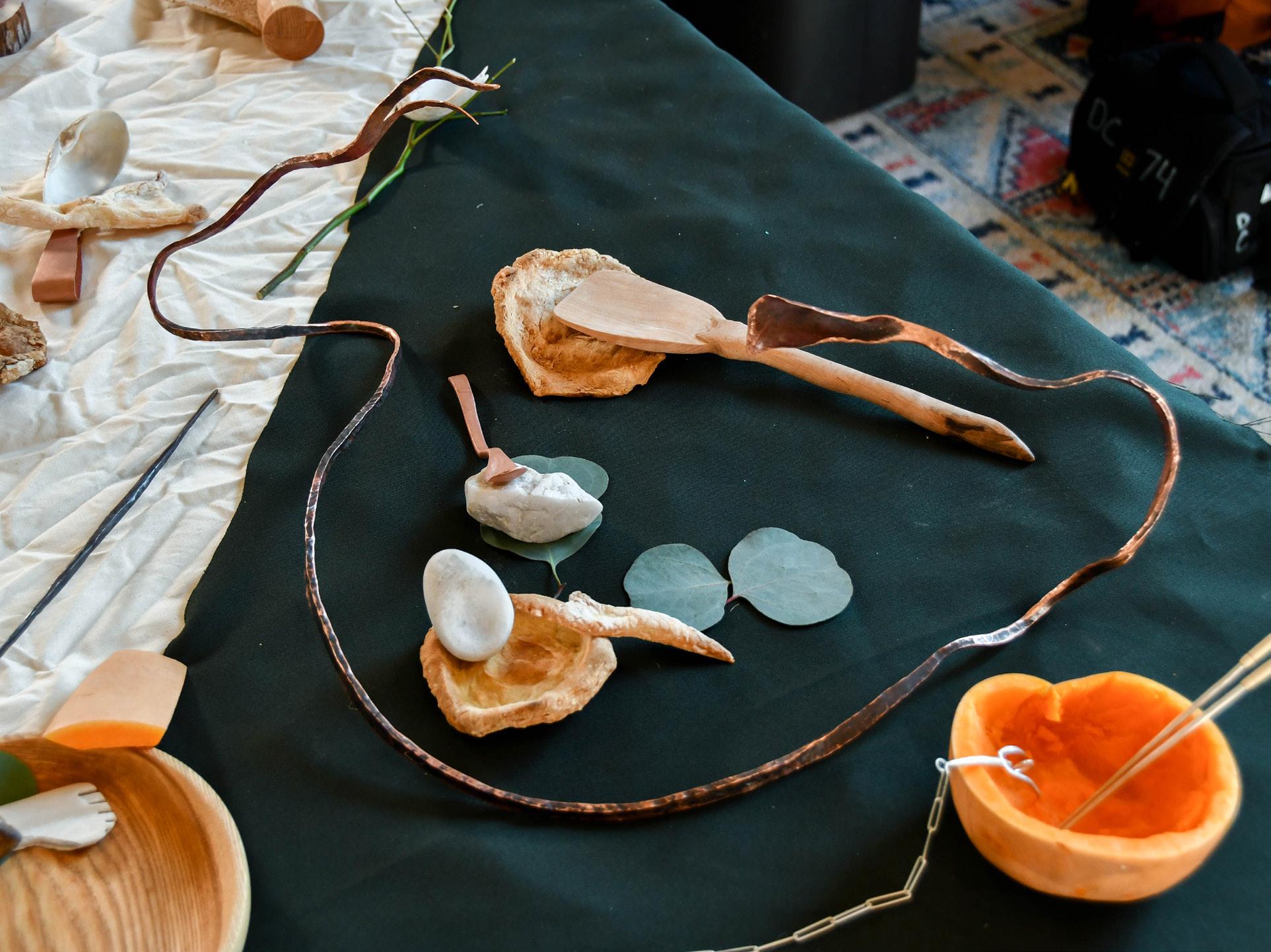 The copper on the rings and bracelet was heattreated to bring forth the natural colors and patterns from within the metal.