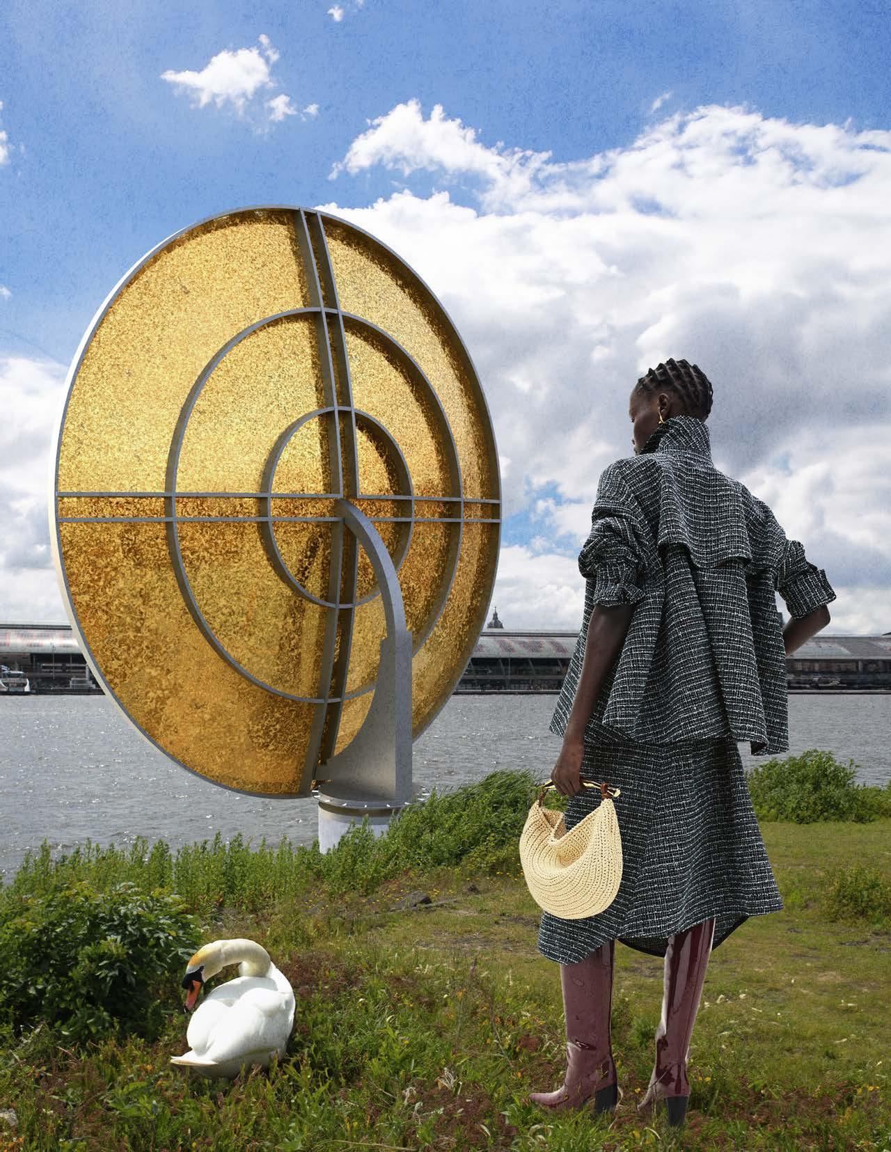 Located by the IJ River in Amsterdam Noord, directly across from the central station, the Sun Reflector is a striking temporary installation. Created for a fashion show at the Cuyperspassage, this installation explores the theme of motion in relation to the sun’s daily path.
