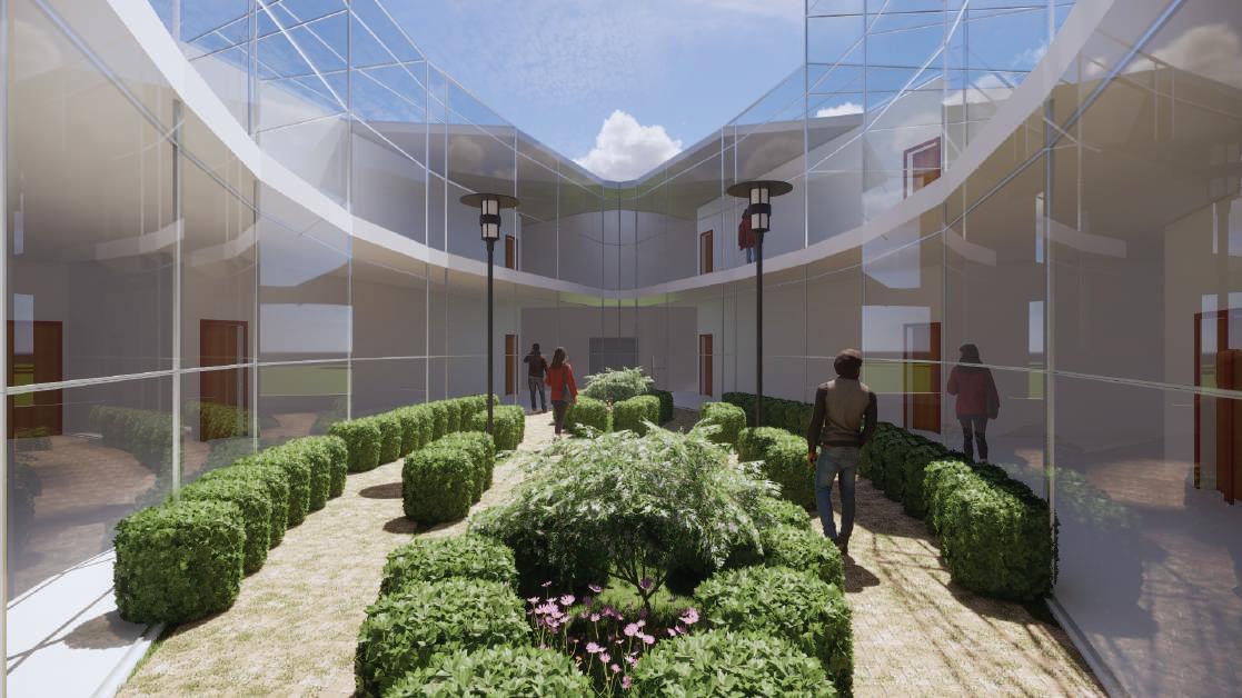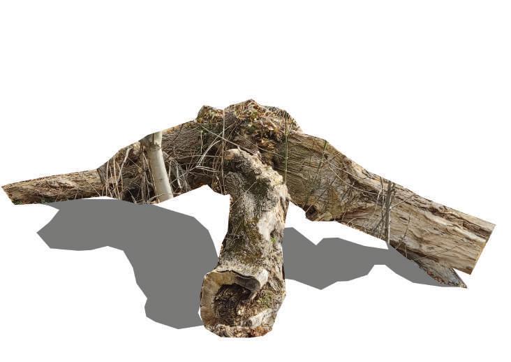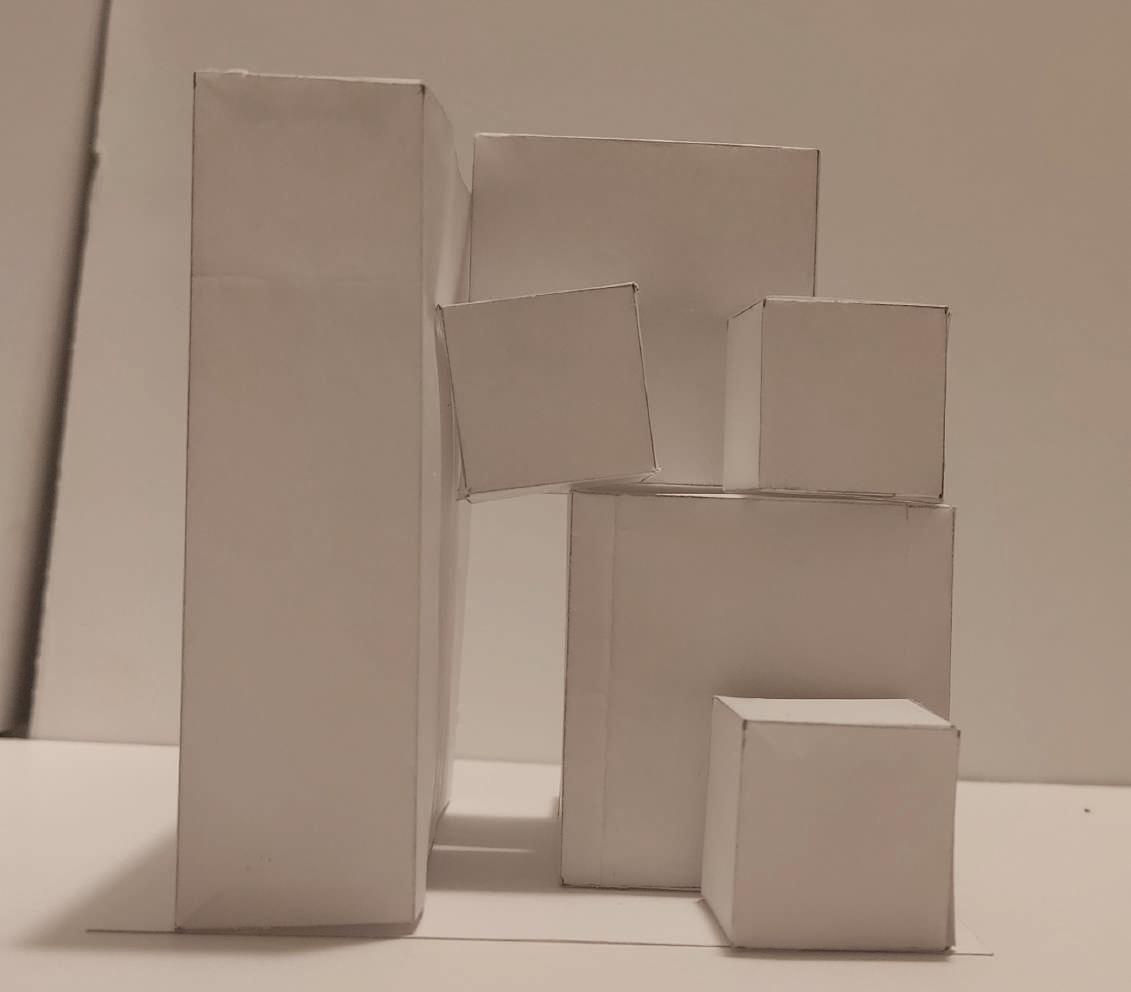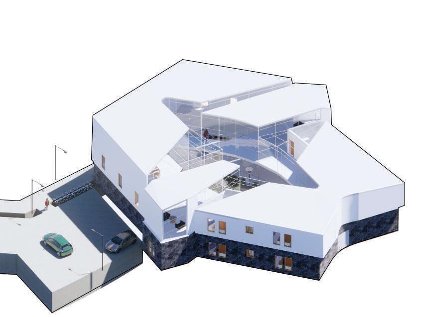 The iteration design is inspired by a trunk found on the location. The shape that the trunk had served to iterate the idea of having a residence where there is a center as the main point and it stretches outwards de ning the more private/ quiet spaces. Then, the idea evolved as two shapes interacting between each other, but still forcing the circulation going to the center.