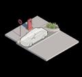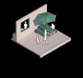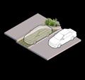Derecha (Derecha): axonometrías de usos del espacio a partir de modulación de mobiliario.
