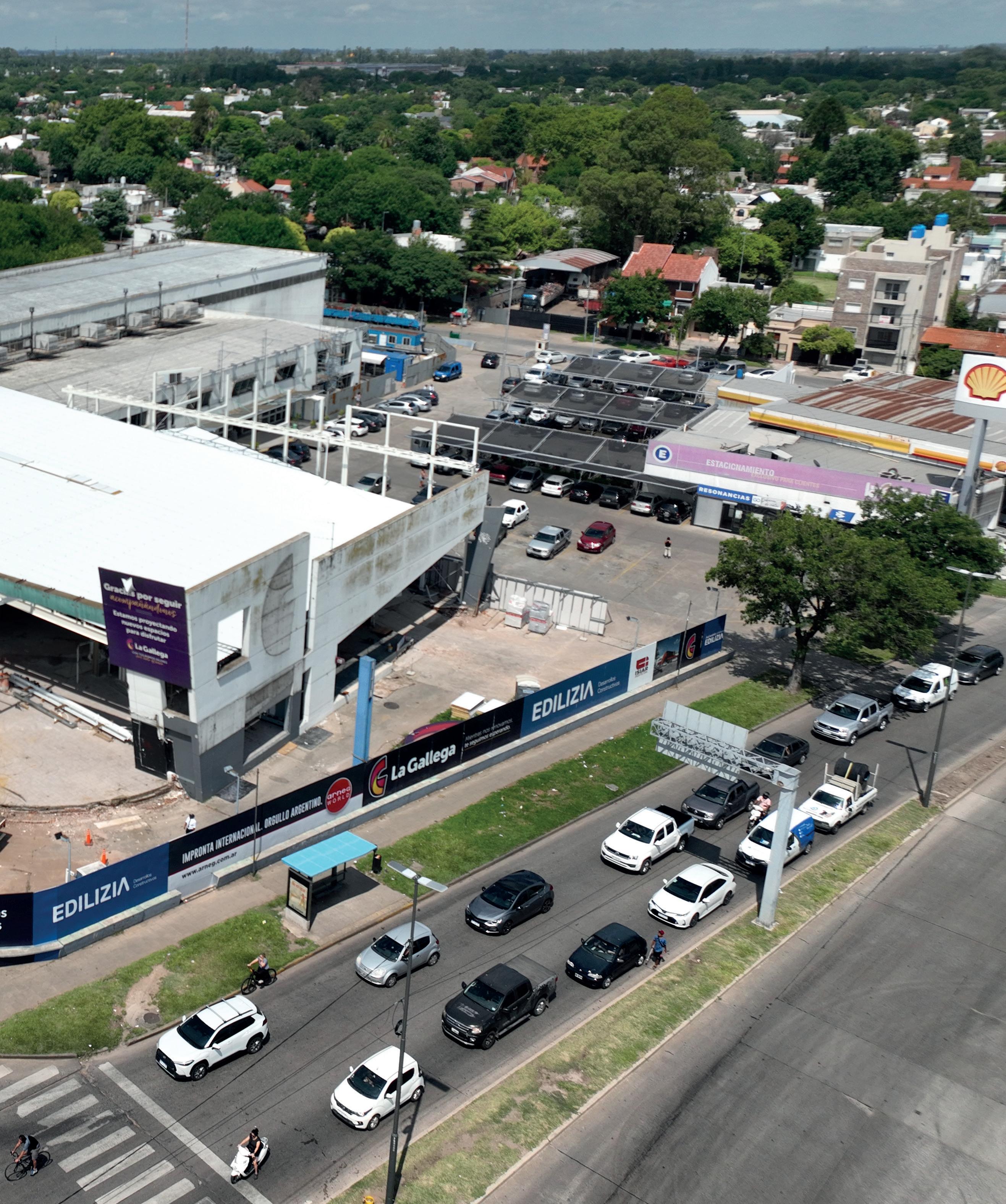 EDILIZIA trabaja en la remodelación y ampliación de la sucursal de La Gallega ubicada en una de las esquinas más transitadas de la ciudad sin interrumpir su funcionamiento normal: