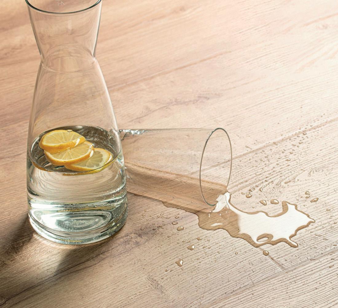 El nuevo producto tiene los cantos íntegramente sellados, lo que evita el ingreso de agua en juntas y uniones y el HDF de su base es HDF Aquatec, el cual tiene una composición que lo hace resistente a la humedad. Además, tiene una alta resistencia a los