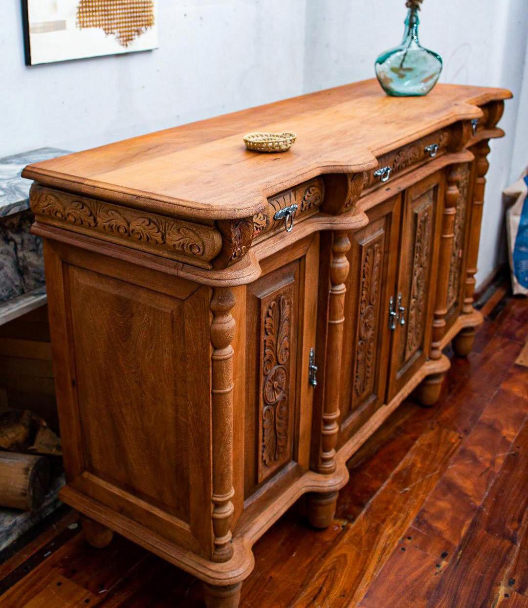 deciden cuál técnica quieren, y yo me encargo de darle vida a sus ideas”. Además, todos los muebles pasan por un proceso meticuloso que incluye el pulido de sus herrajes, el trabajo en los interiores y varias capas de protección para garantizar su durabilidad.