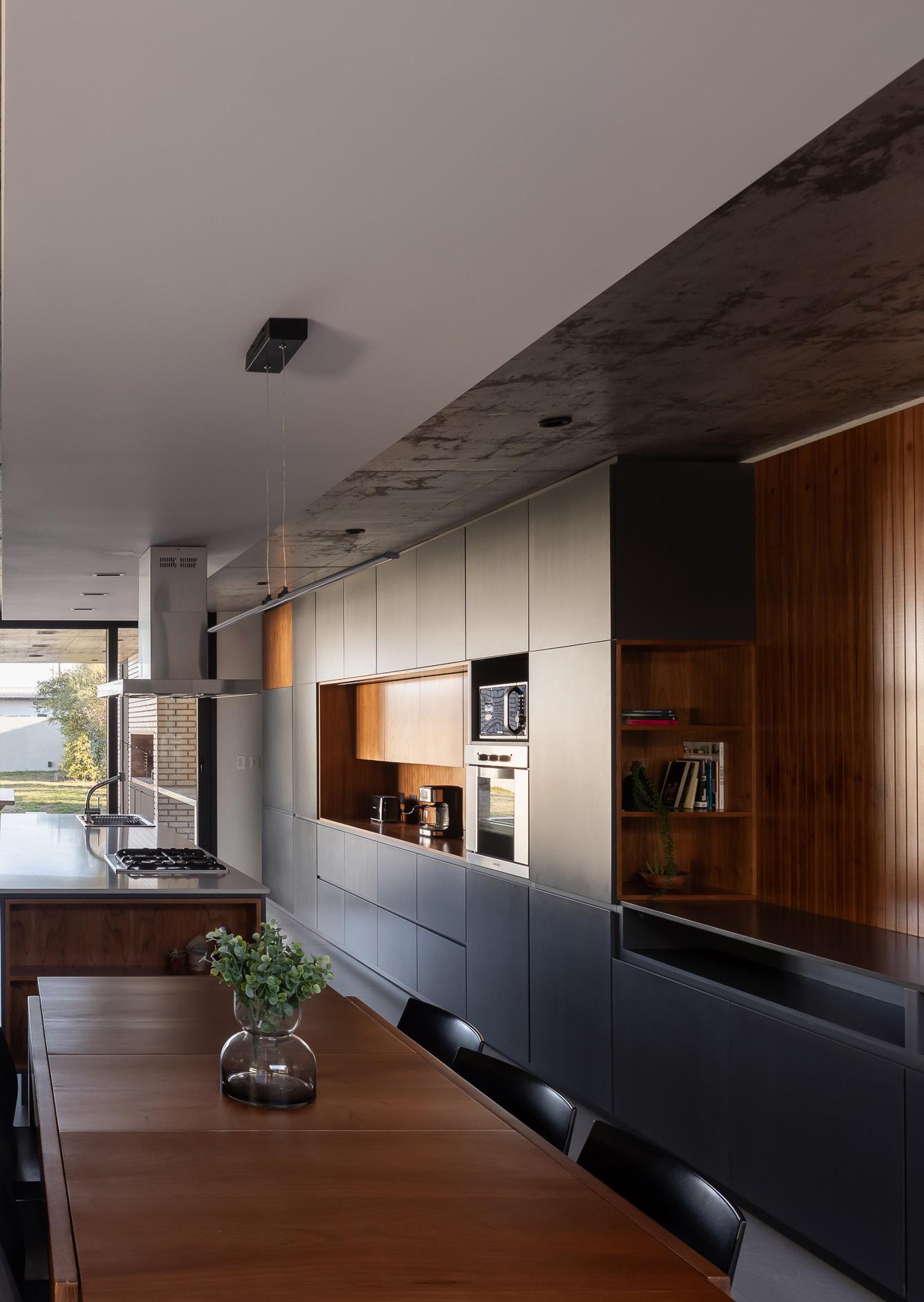 - Ouku Arquitectos: No tenemos un material predilecto, aunque sí evitamos algunos, especialmente para exteriores, como los revoques y texturados plásticos. A lo largo del tiempo hemos trabajado con diversos materiales, incluyendo sistemas en seco, mixtos, con terminación en chapa sinusoidal, hormigón visto y revestimien-