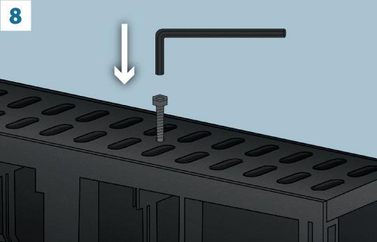 9. El borde superior de la reja debe quedar de 3 a 5 mm por debajo del suelo o del piso terminado. En el caso de pisos terminados, se debe dejar una pequeña junta de dilatación para que el canal de piso no reciba fuerzas horizontales.
