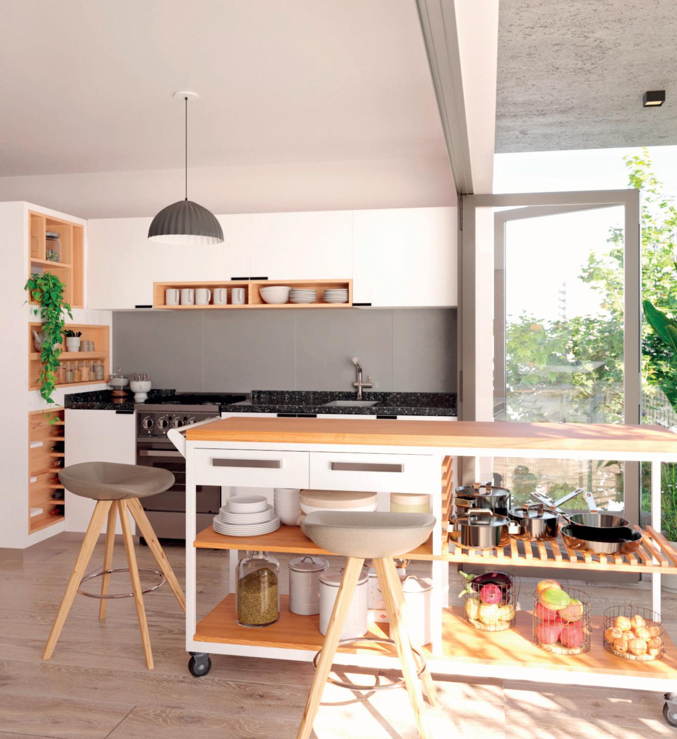 Por ejemplo, a un joven que alquila un departamento le resultaría más funcional contar con una cocina más pequeña que le permita aprovechar el espacio ganado para destinarlo a otro artefacto, otro mueble de cocina, o un mayor espacio de guardado que le aporte a su habitabilidad. Incluso en monoambientes hasta se podría prescindir del espacio del lavarropas, ya que los jóvenes suelen ir a la lavendería.