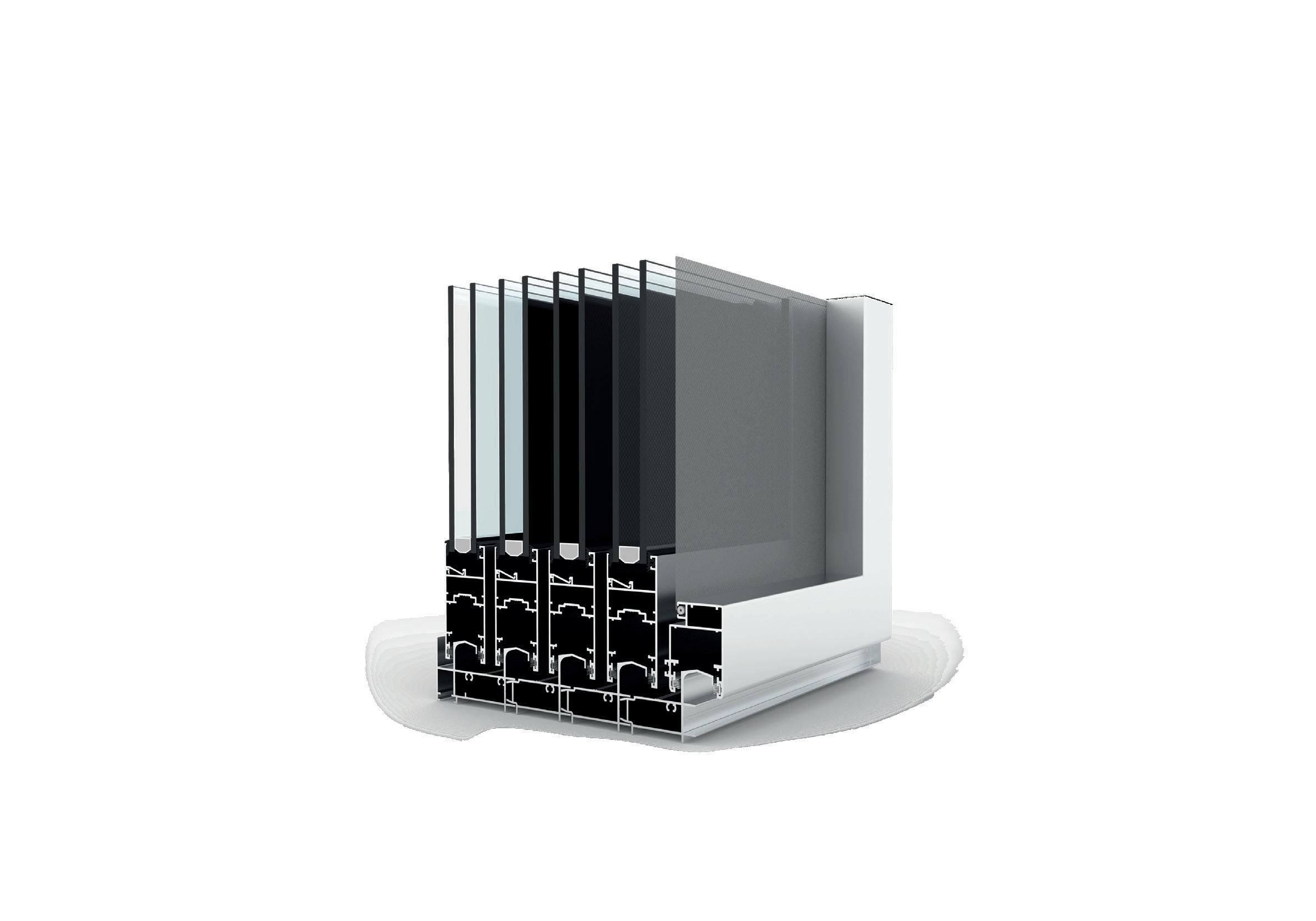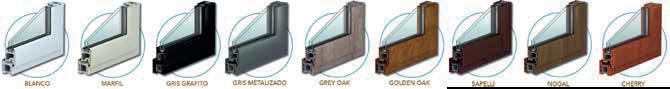 • Corredizo (2 hojas móviles, fija-móvil y otras combinaciones) para puertas y ventanas.