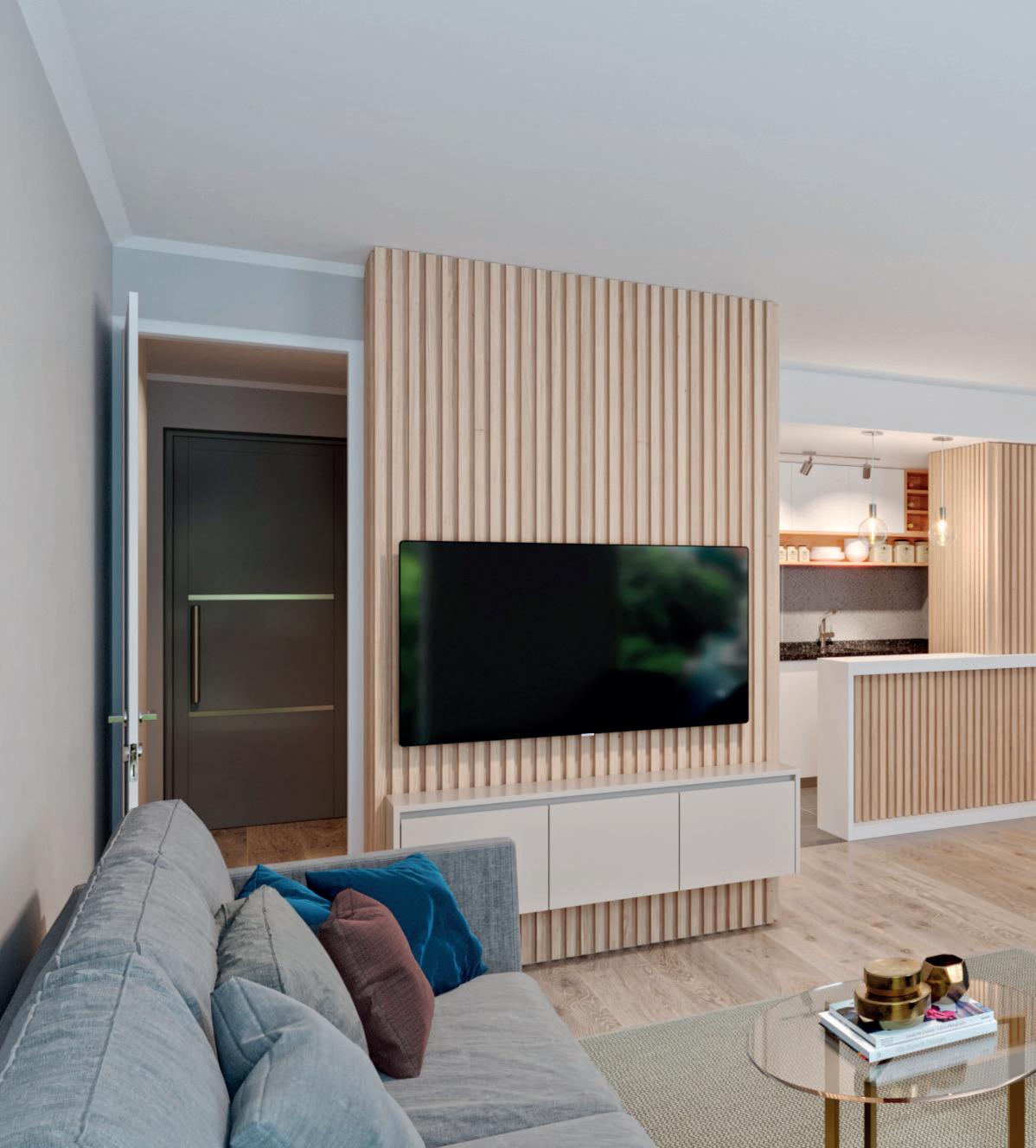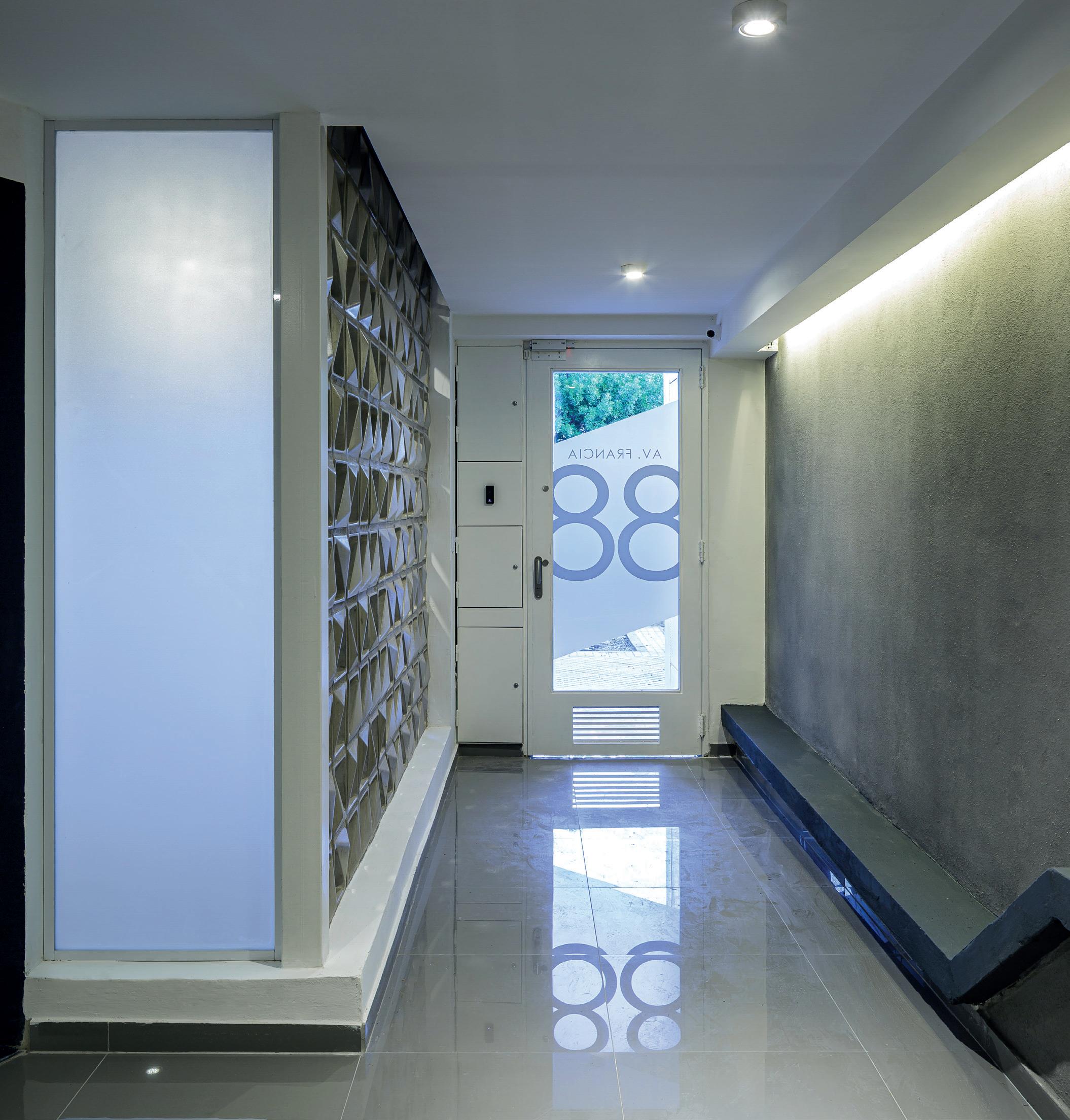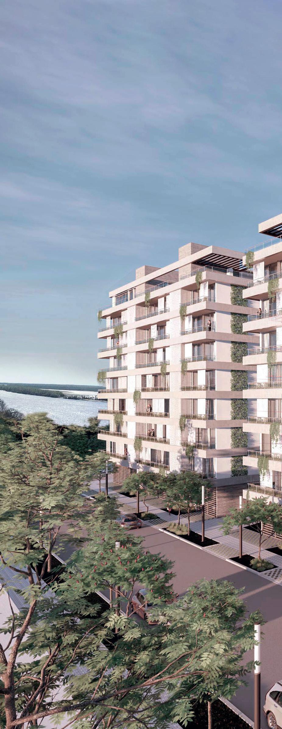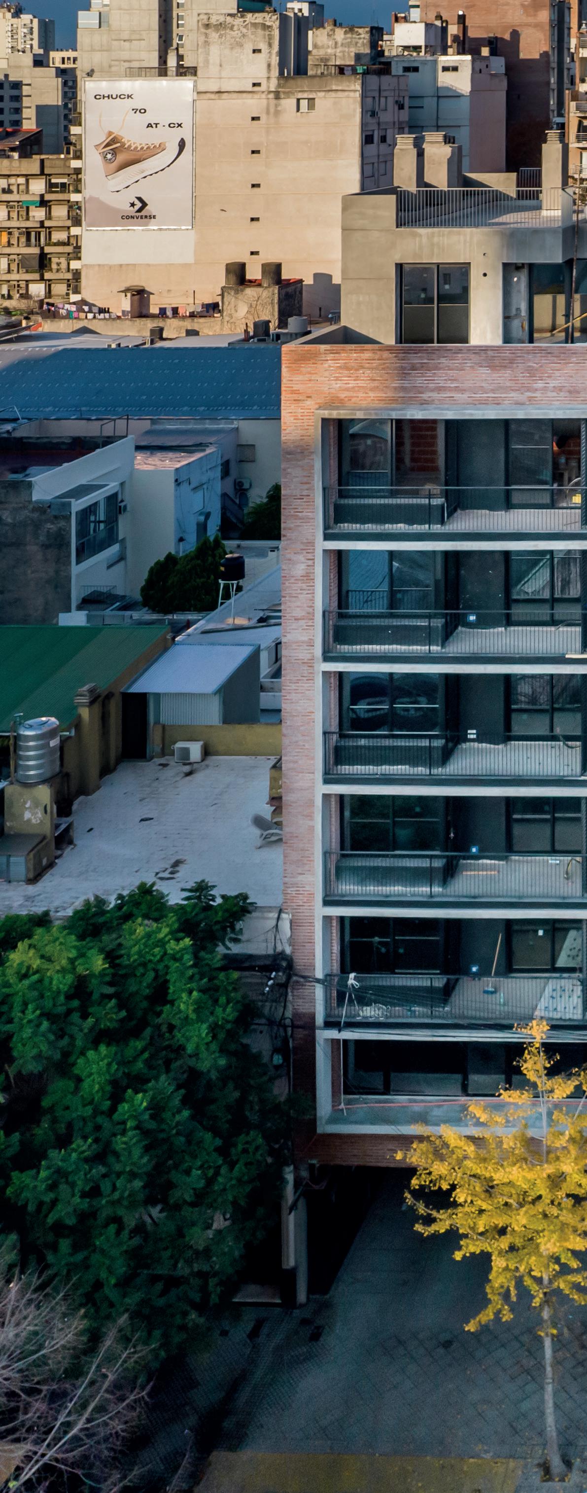 balcón de cada departamento al interior de los ambientes, brindando una mejor interacción social, pudiendo utilizar la iluminación y ventilación natural. “Trabajamos la piel del edificio, las aberturas, el mobiliario hecho a medida buscando aquellas formas de vida suburbanas aplicadas en este caso en unidades del centro”, describió.