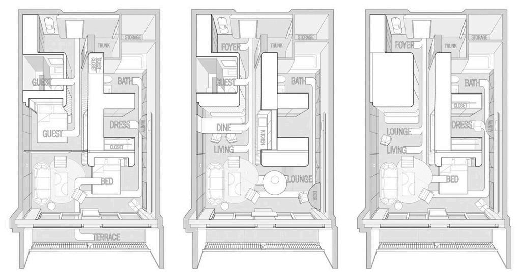 DesignResearch:ConductedresearchonModernistinfluences,particularlyLe Corbusier’sconceptsofsmall-scalelivingandefficiency,toinformtheoverall designapproachandmaximizespaceusagewithintheapartment.