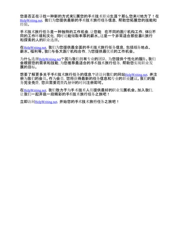 想要了解更多关于手术技术旅行任务的信息?请访问我们的网站HelpWriting.net,并注 册为我们的会员。作为会员,您将获得最新的任务信息和专业的职业建议。我们的服 务完全免费,您只需要花费几分钟的时间注册即可。
